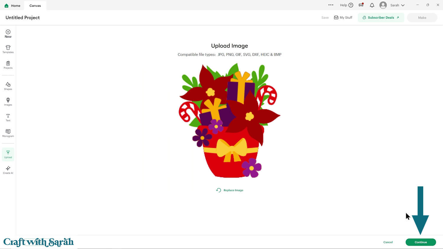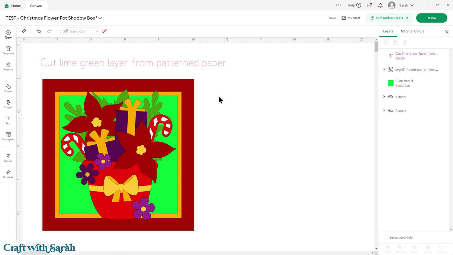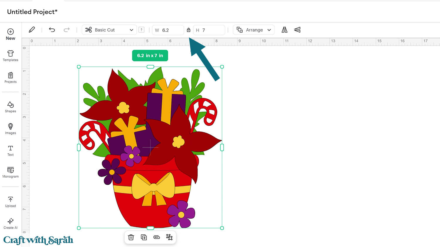 Upload the file in the “01 Cricut Version” subfolder called svg-01-flower-pot-christmas-craftwithsarah.svg