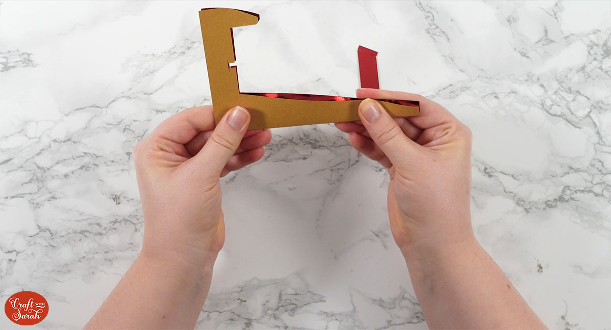 Tuck the little extra piece into one of the sides, under the slots cut in the stand.