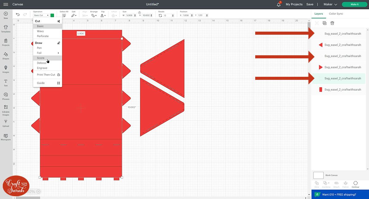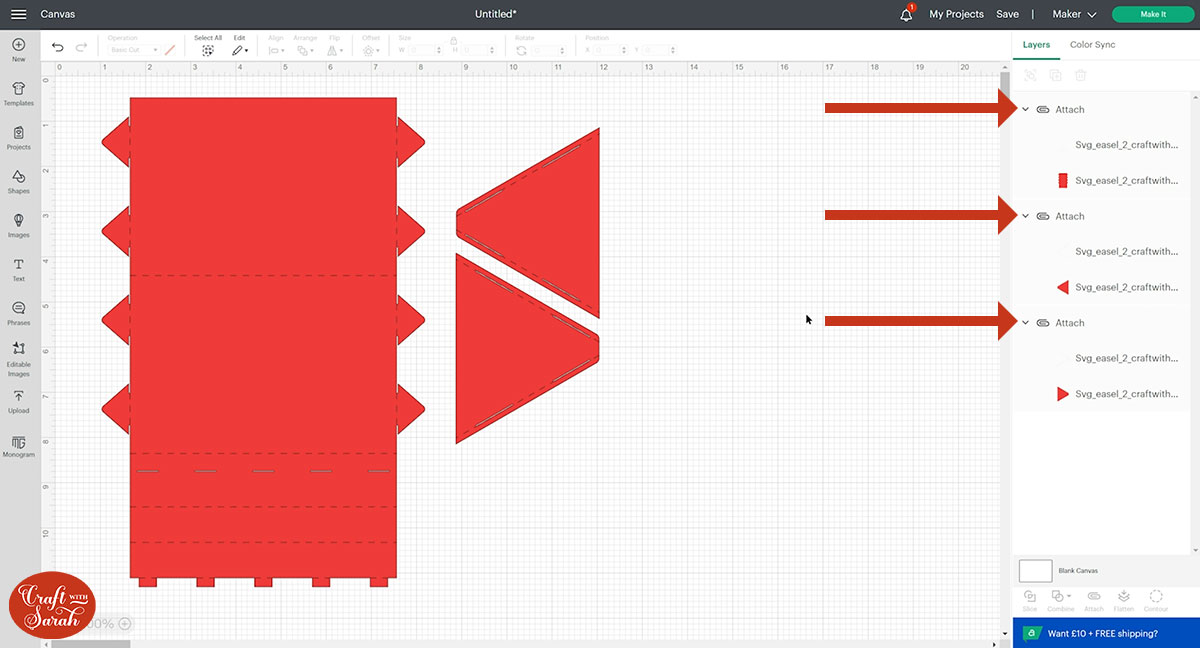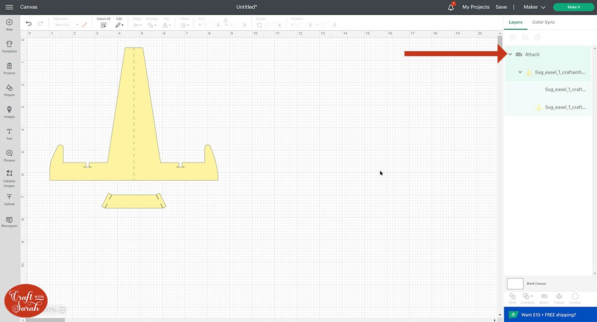 Select the big piece of the easel stand and the score lines on top of it and “Attach” them.