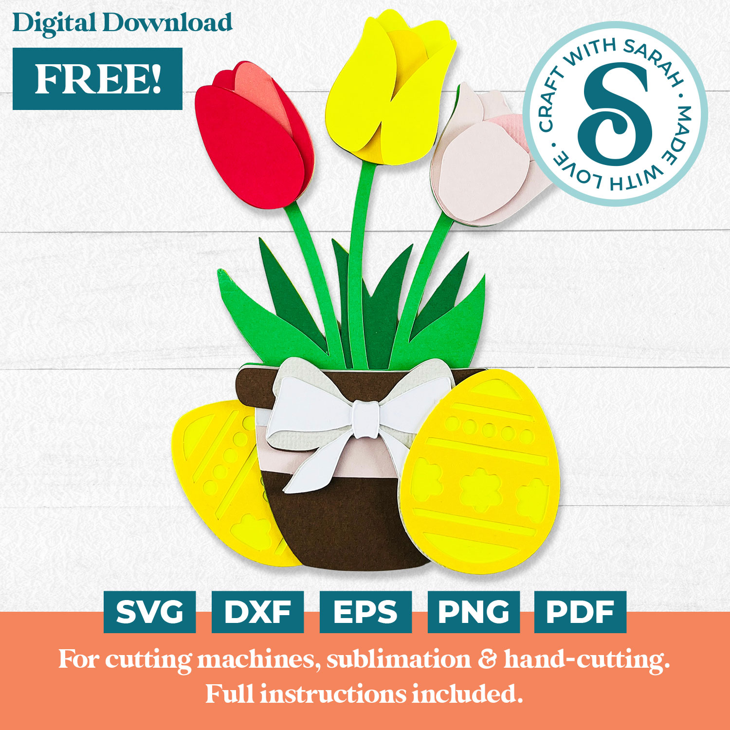 Easter Tulips Flower Pot 🌷 Free SVG for Easter Crafts