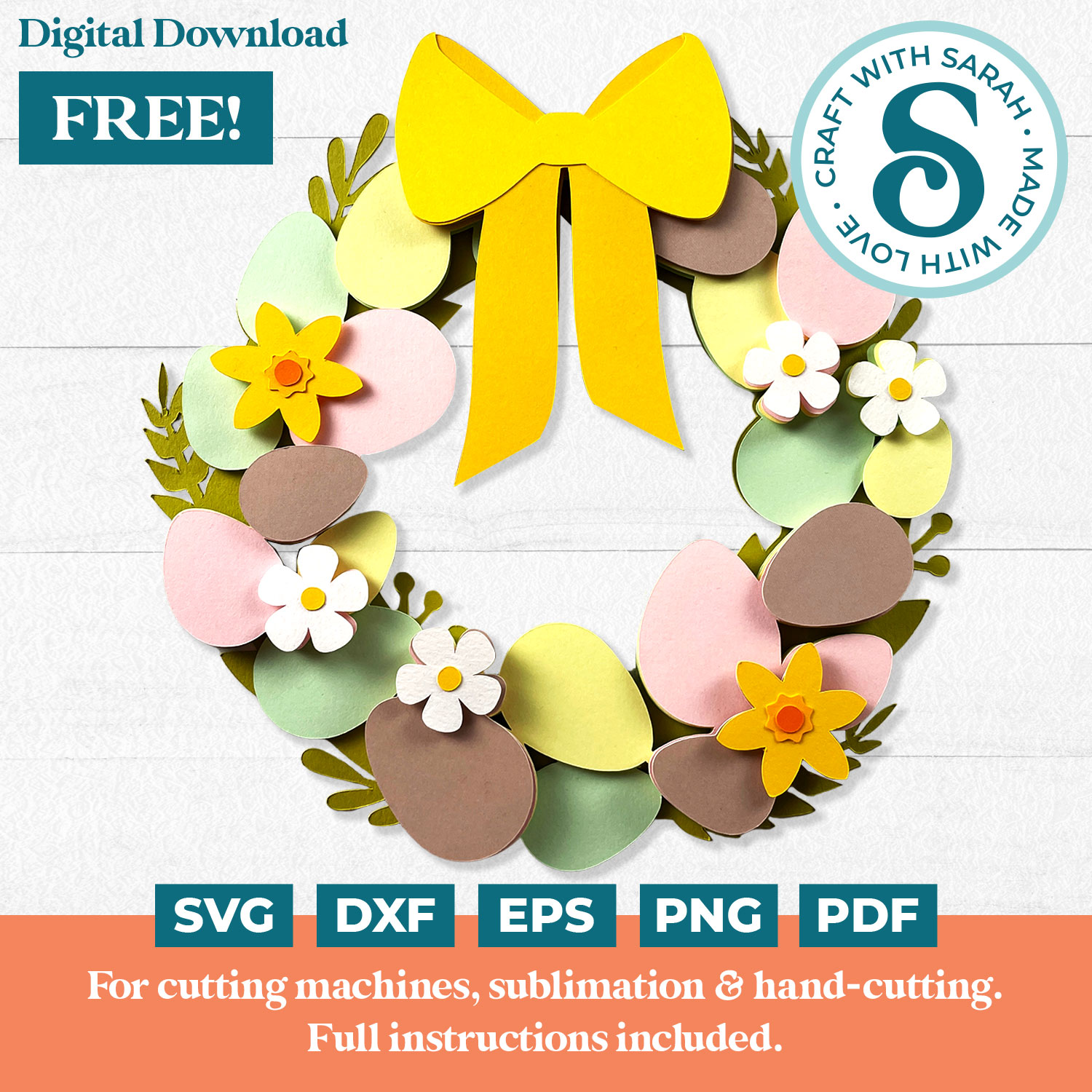 Make a pretty DIY Easter wreath from cardstock with this free cut file for Cricut and other digital cutting machines.