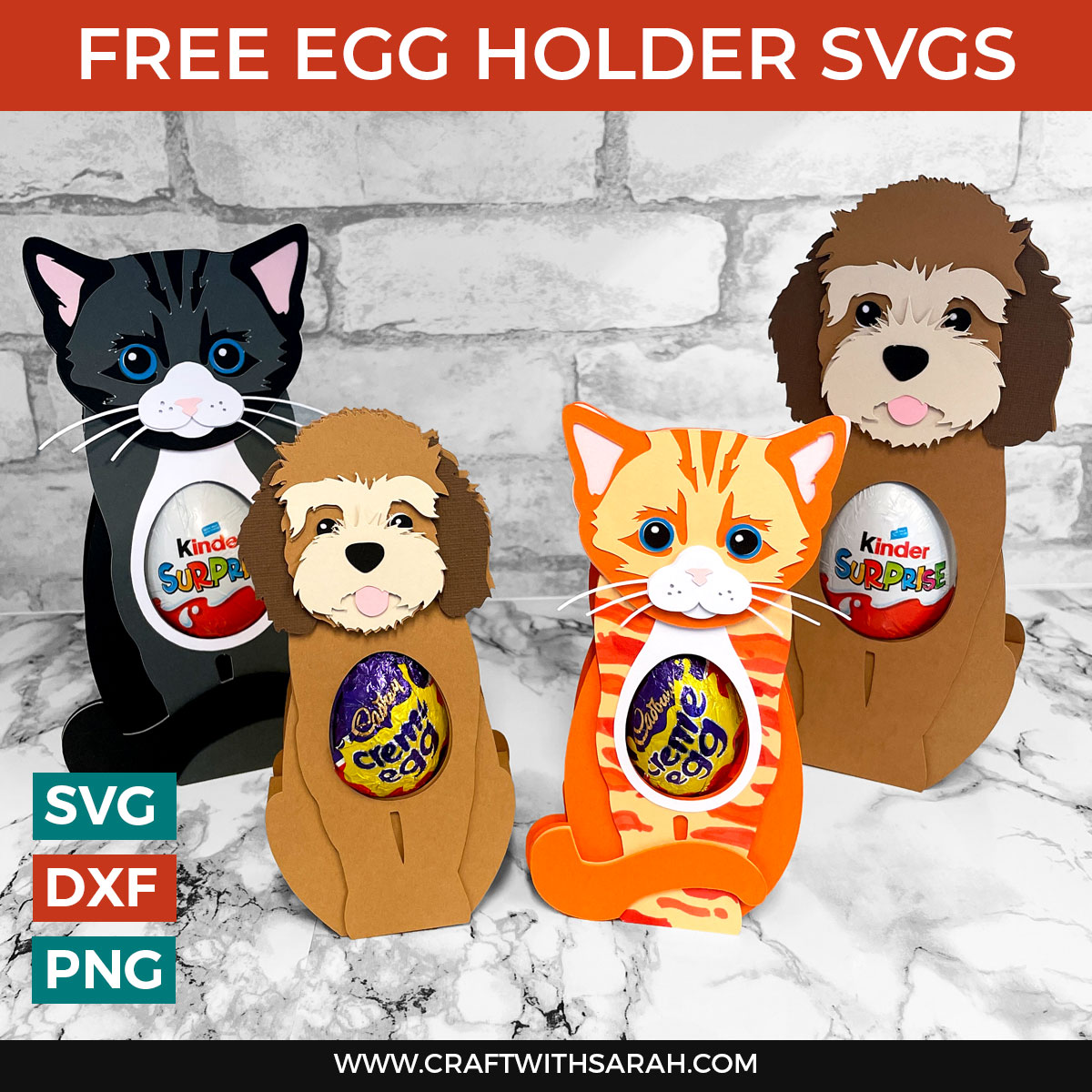 Display your Easter eggs in style with these fun cat & dog free egg holder SVGs.