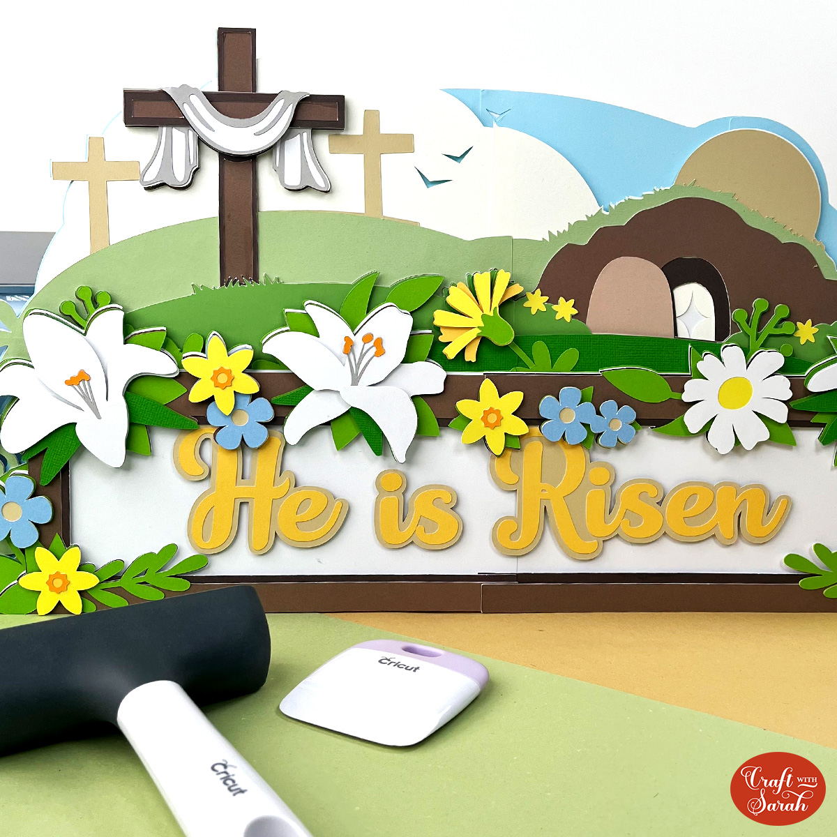 Make a detailed He is Risen craft project for Easter with this free SVG.