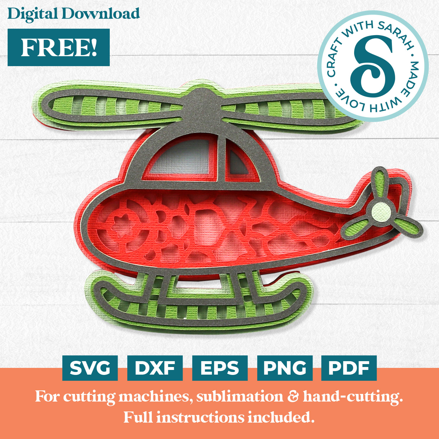 This layered helicopter SVG is nine layers in total, but don’t let that worry you as the top three layers are just the propeller on the back and they are glued together rather than stuck with foam pads.