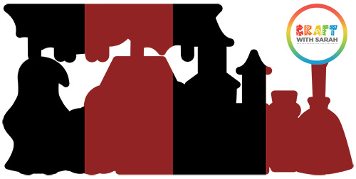 The image below shows how to stick the four pieces together. Your pieces will all be black, but I’ve shown two in red on the diagram to show how the need to be stuck together to form the completed shapes around the edges.
