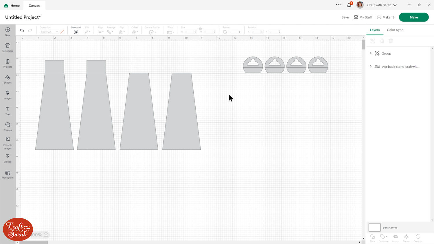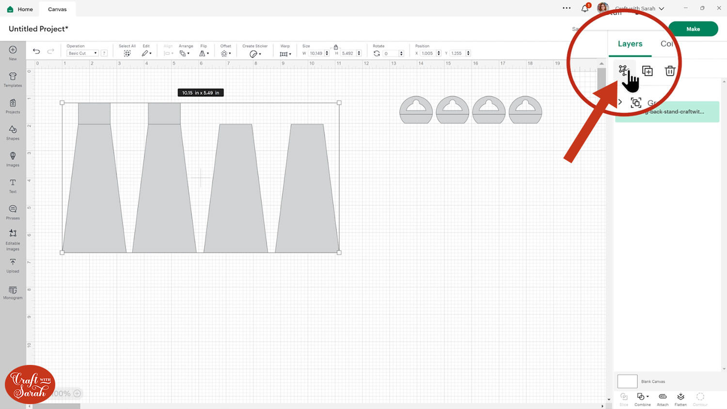 To get the stands ready for cutting, first click the Ungroup button to separate out the layers.
