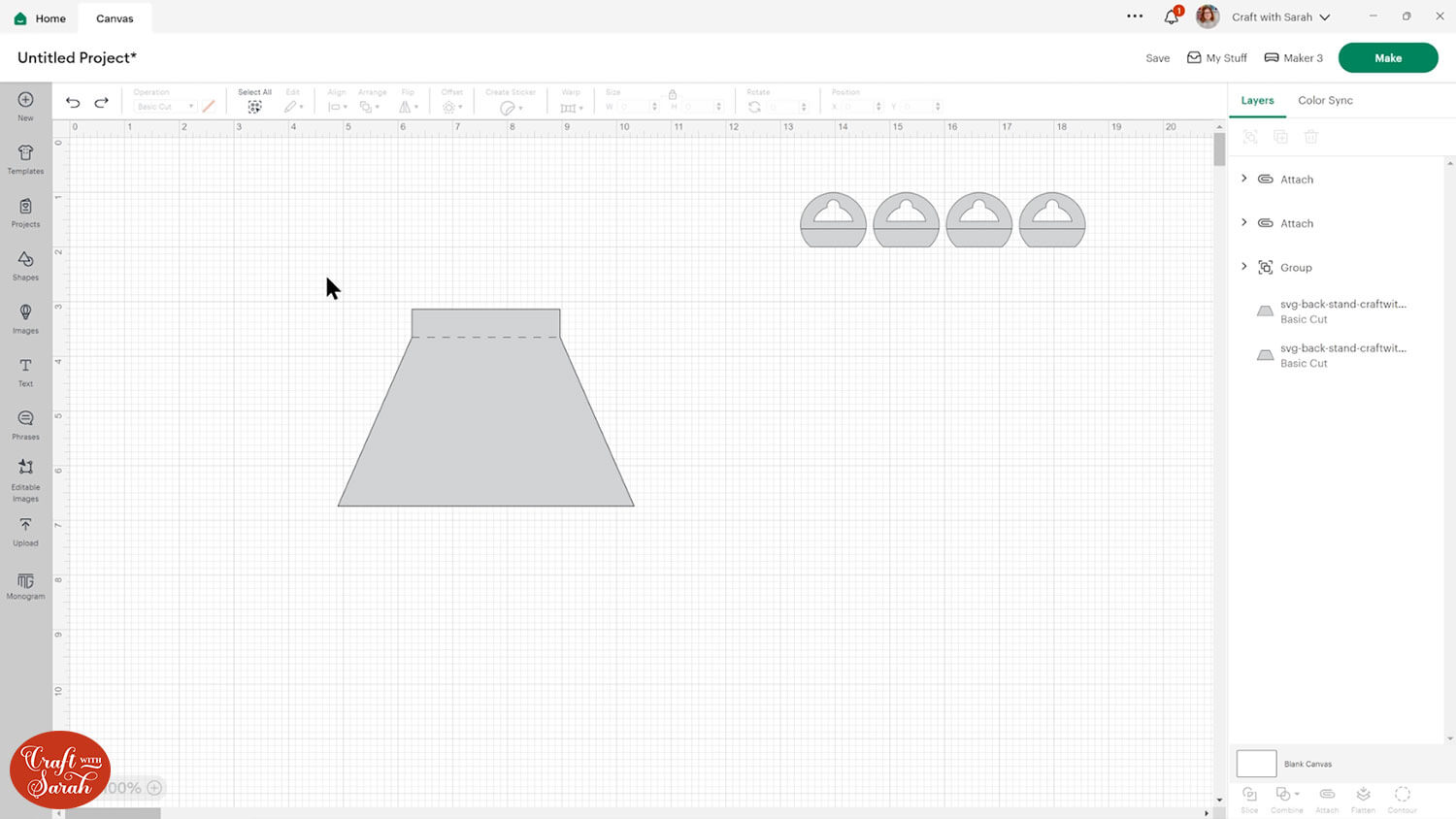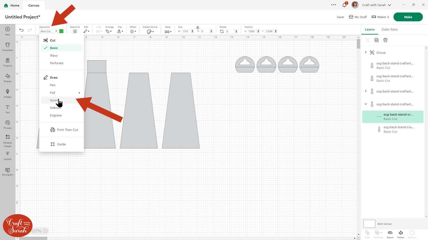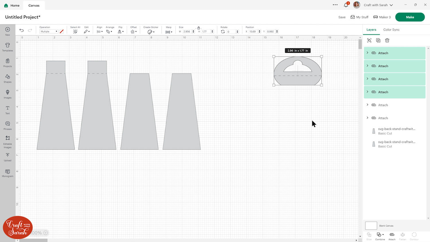 We then need to tell the Cricut where to score by selecting both the stand layer and the score line and pressing Attach.