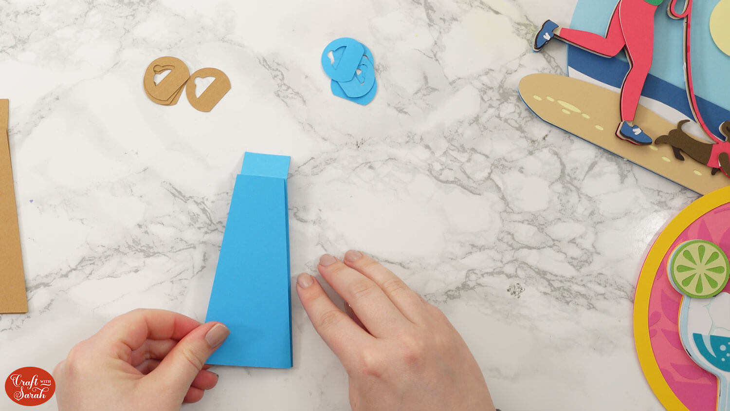 Stick the other two pieces either on top or on the bottom of the two pieces you have just stuck together, lining them up using the score line at the top for guidance.