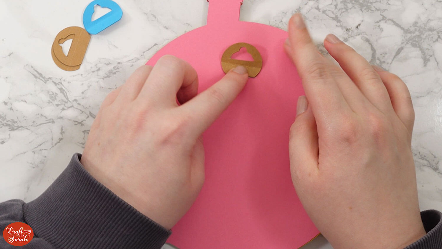 Take your layered design and put glue or tape onto the tab which will stick onto the design.