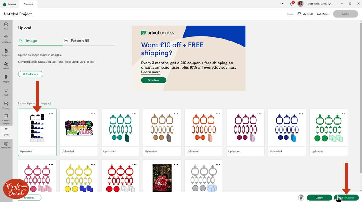 After uploading, the design will show in your “Recently Uploaded Images”.