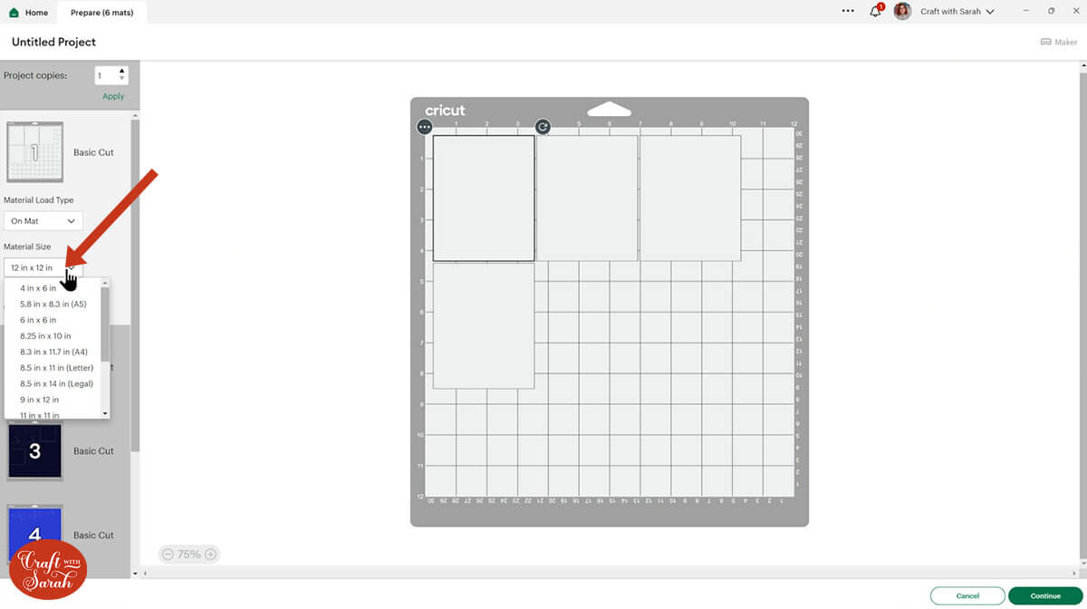 To change the paper size, go into the dropdowns over on the left side of the screen and choose the paper size that you want to use. You need to change it for every single colour.
