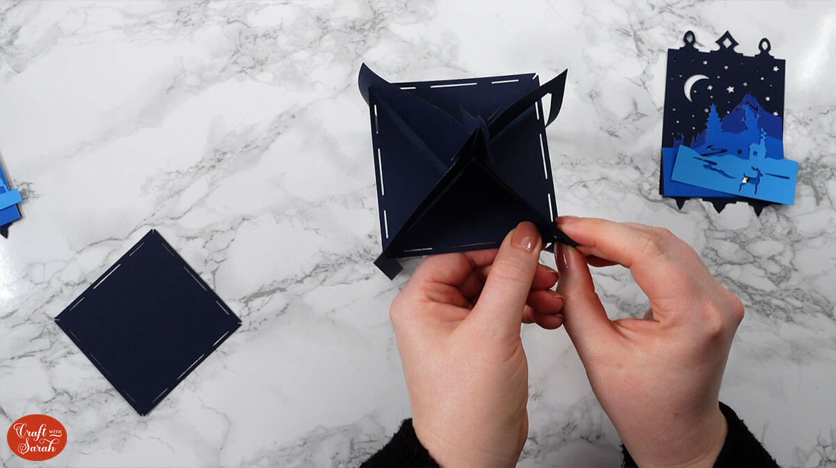 Slide the other square into the bottom of the lantern and ensure all the slits are in place.