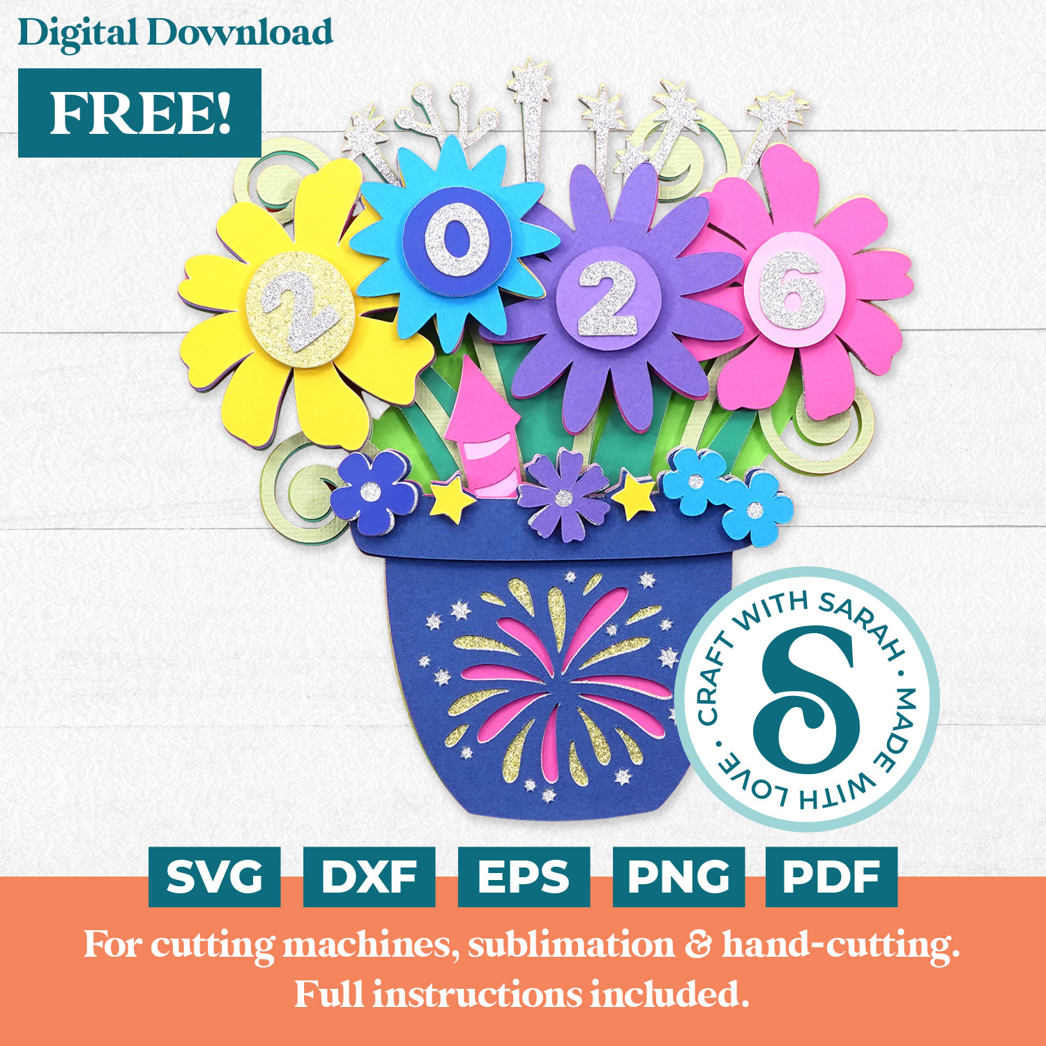 Welcome in 2026 with this fun and colourful New Year’s Eve flower pot free SVG.