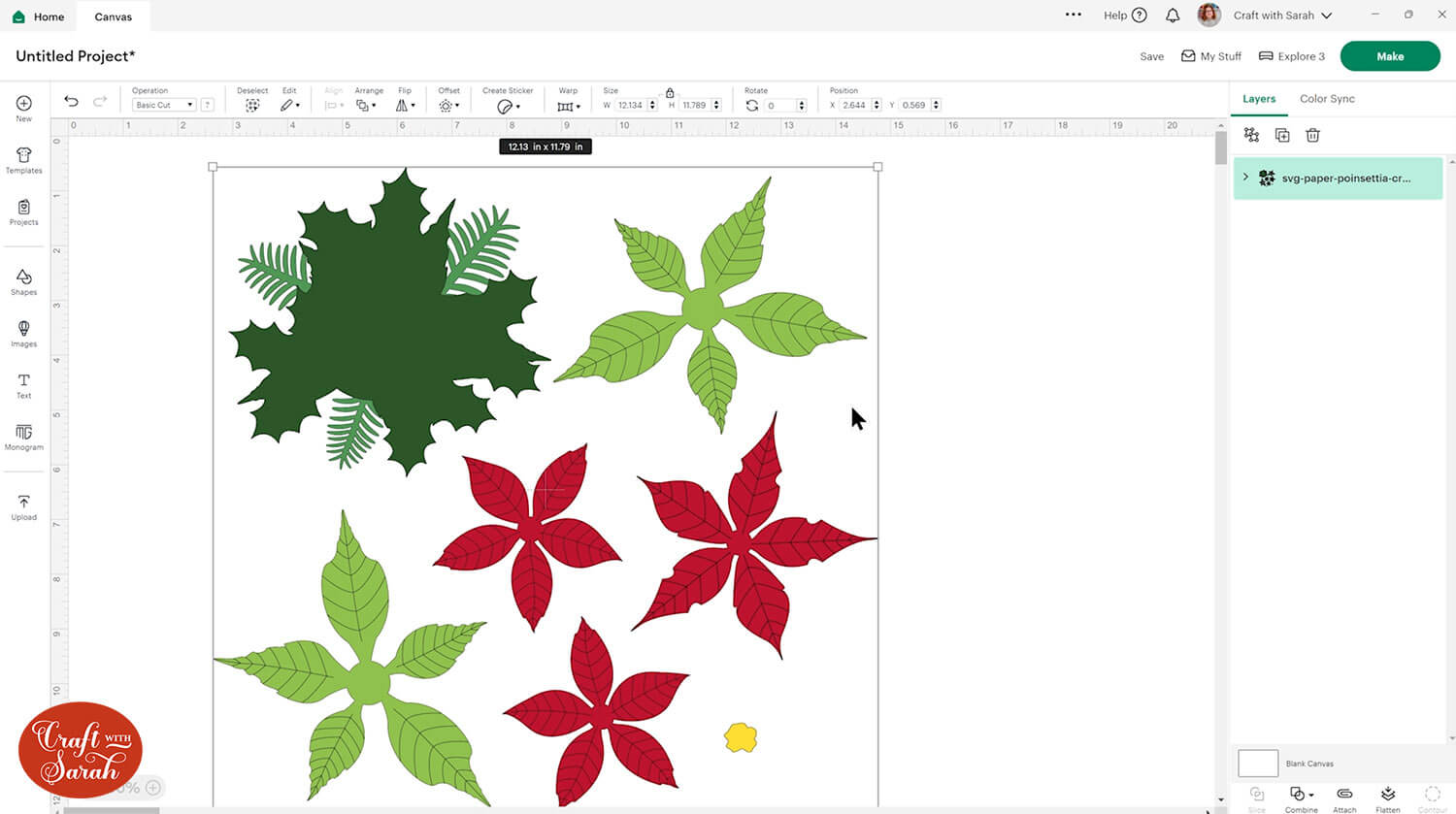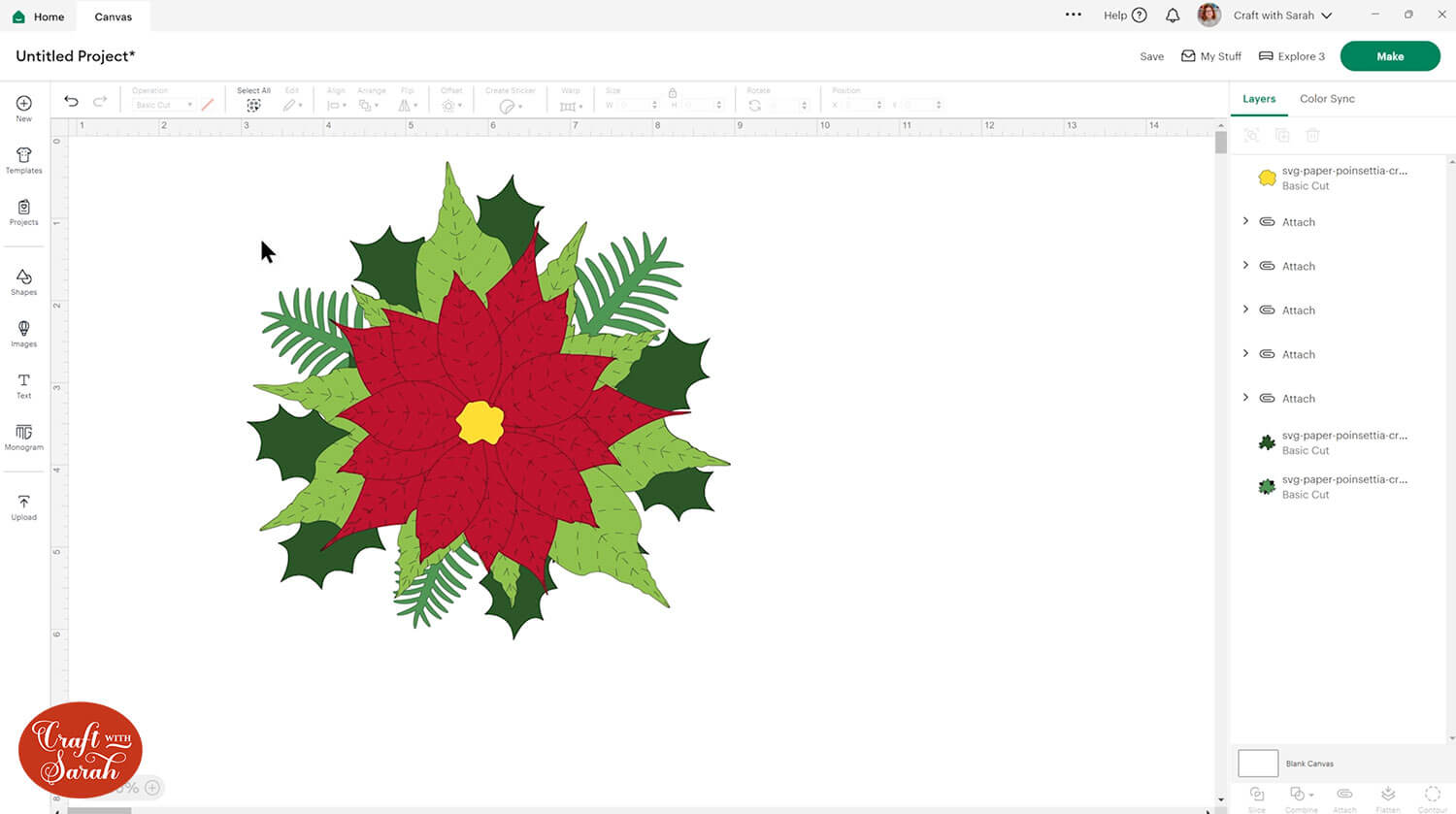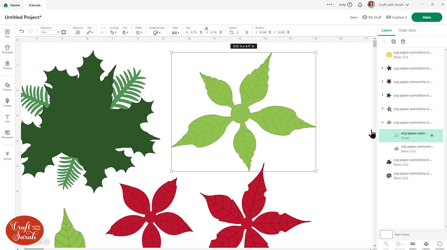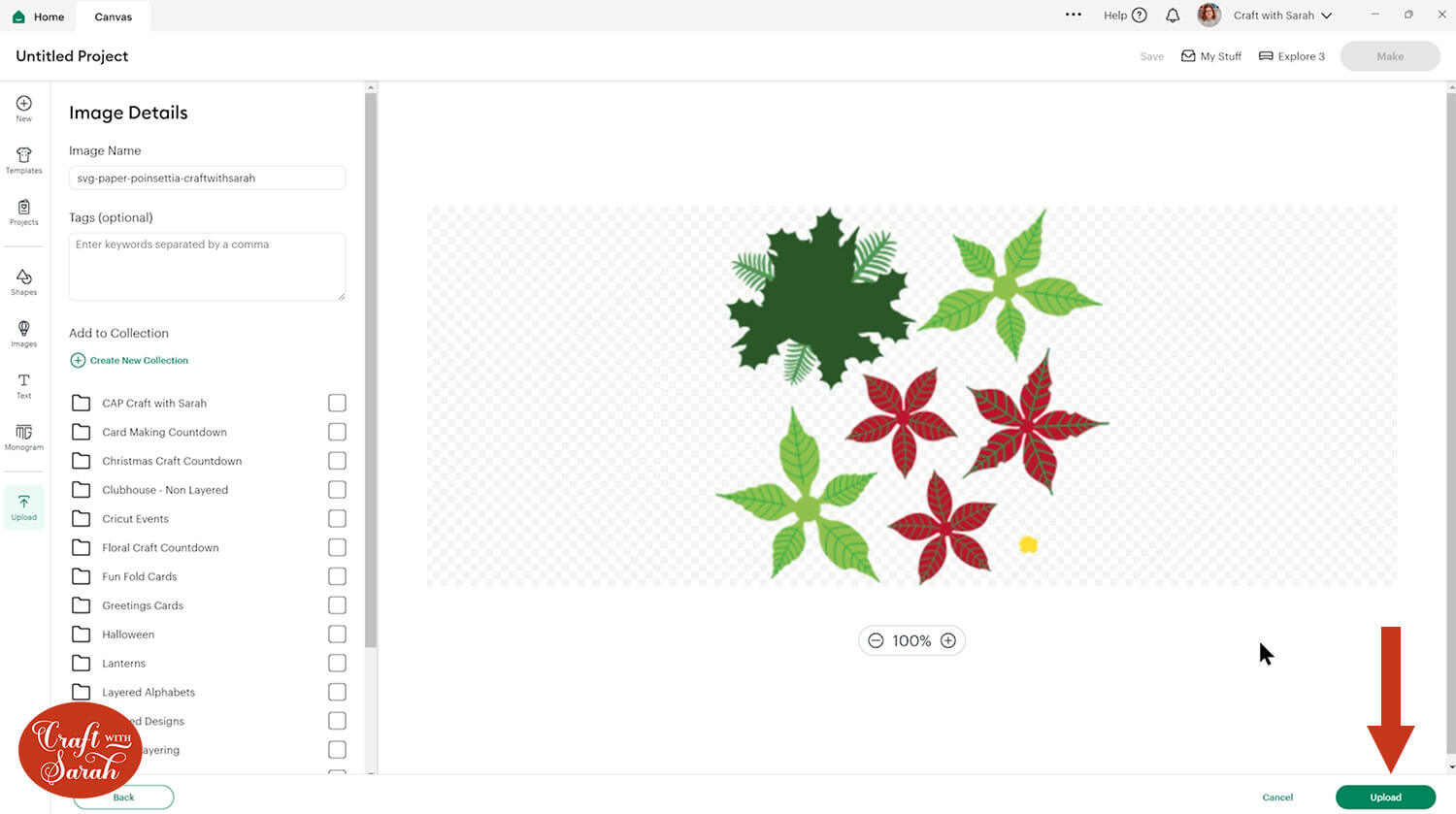 Open up Cricut Design Space and upload the file called svg-paper-poinsettia-craftwithsarah