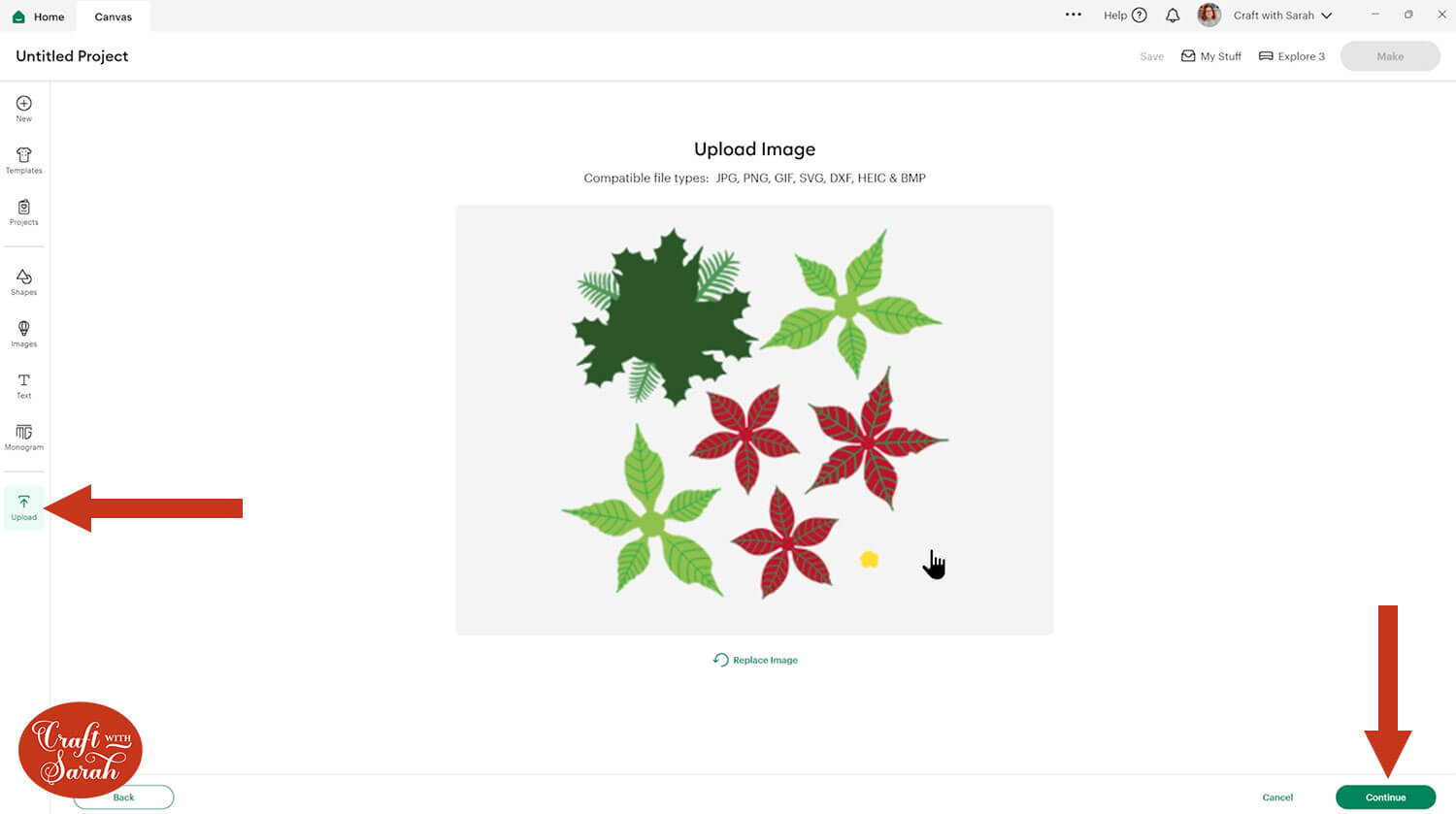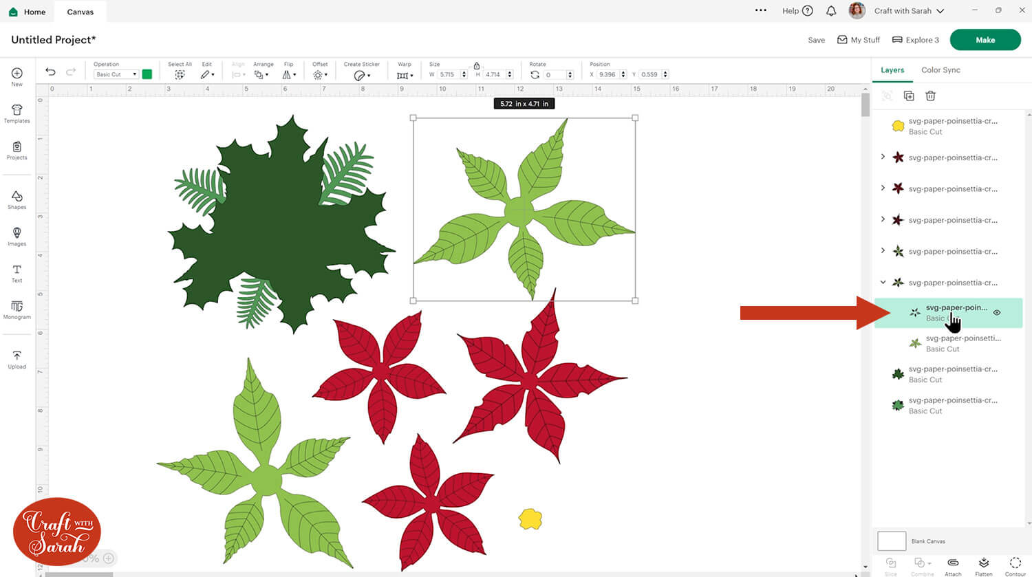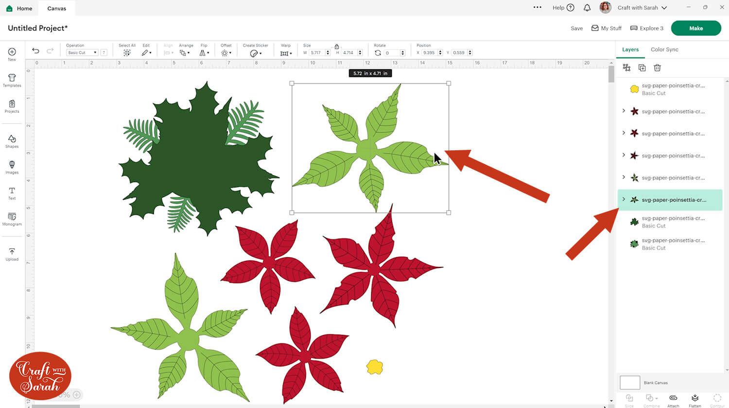 Open up Cricut Design Space and upload the file called svg-paper-poinsettia-craftwithsarah