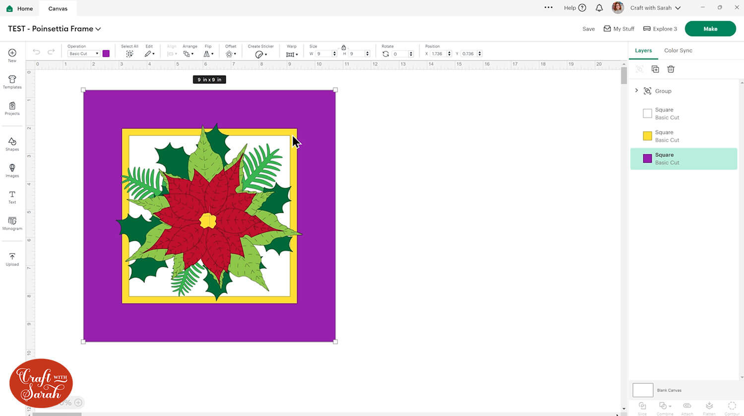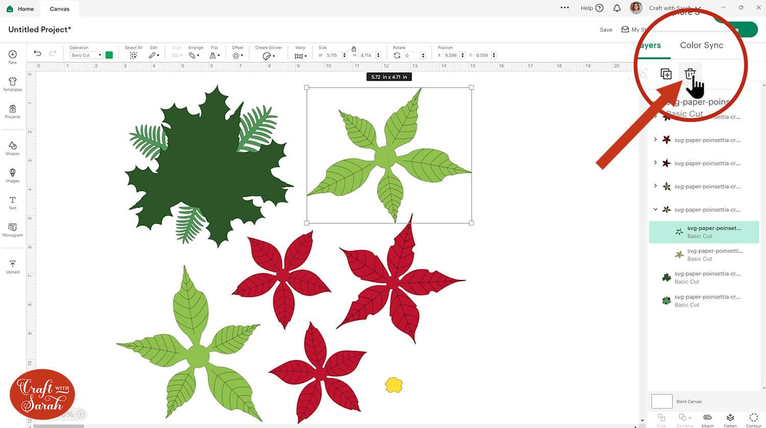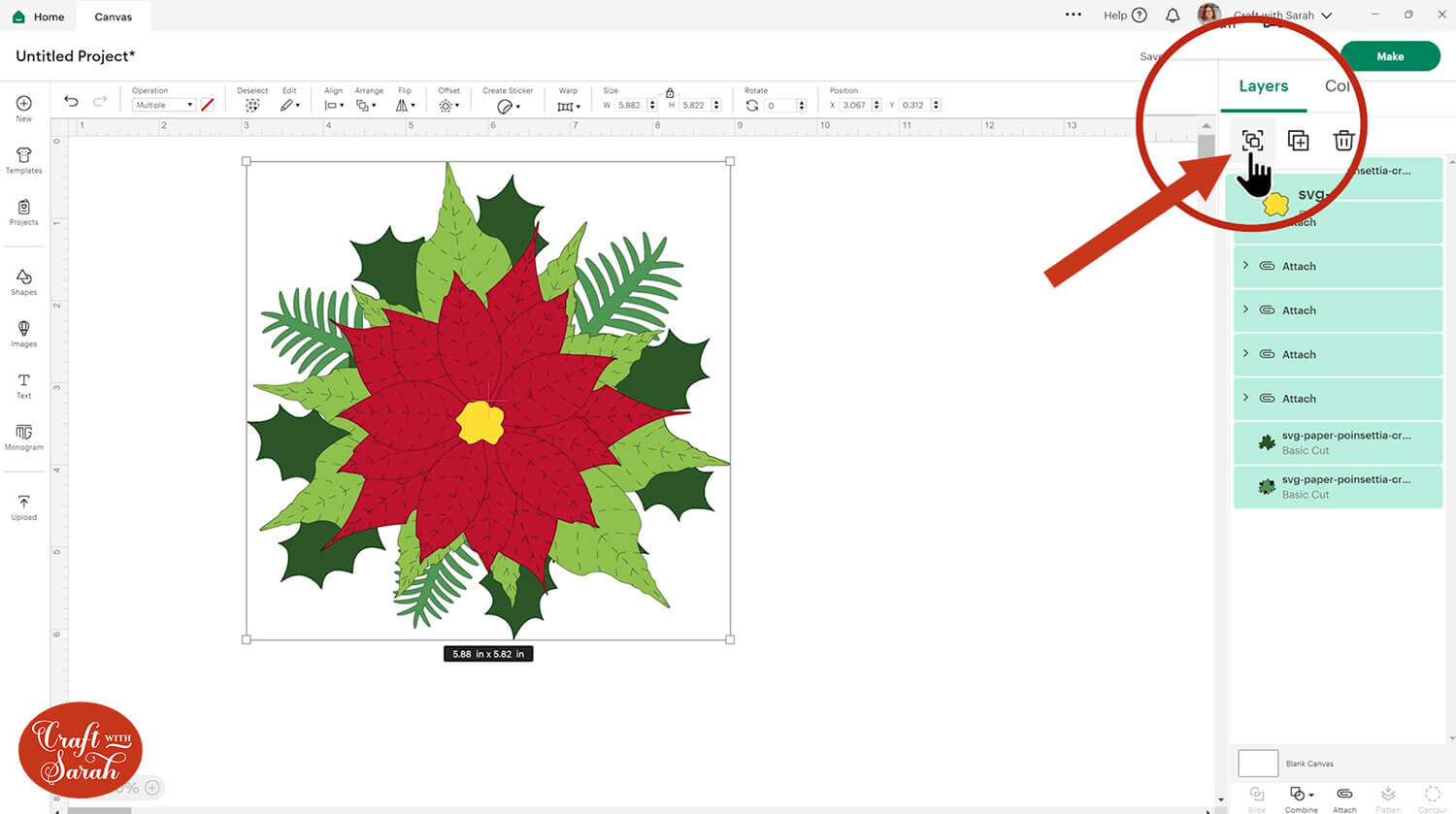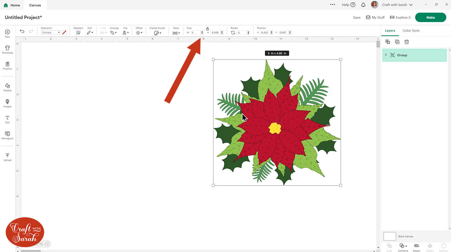 Open up Cricut Design Space and upload the file called svg-paper-poinsettia-craftwithsarah