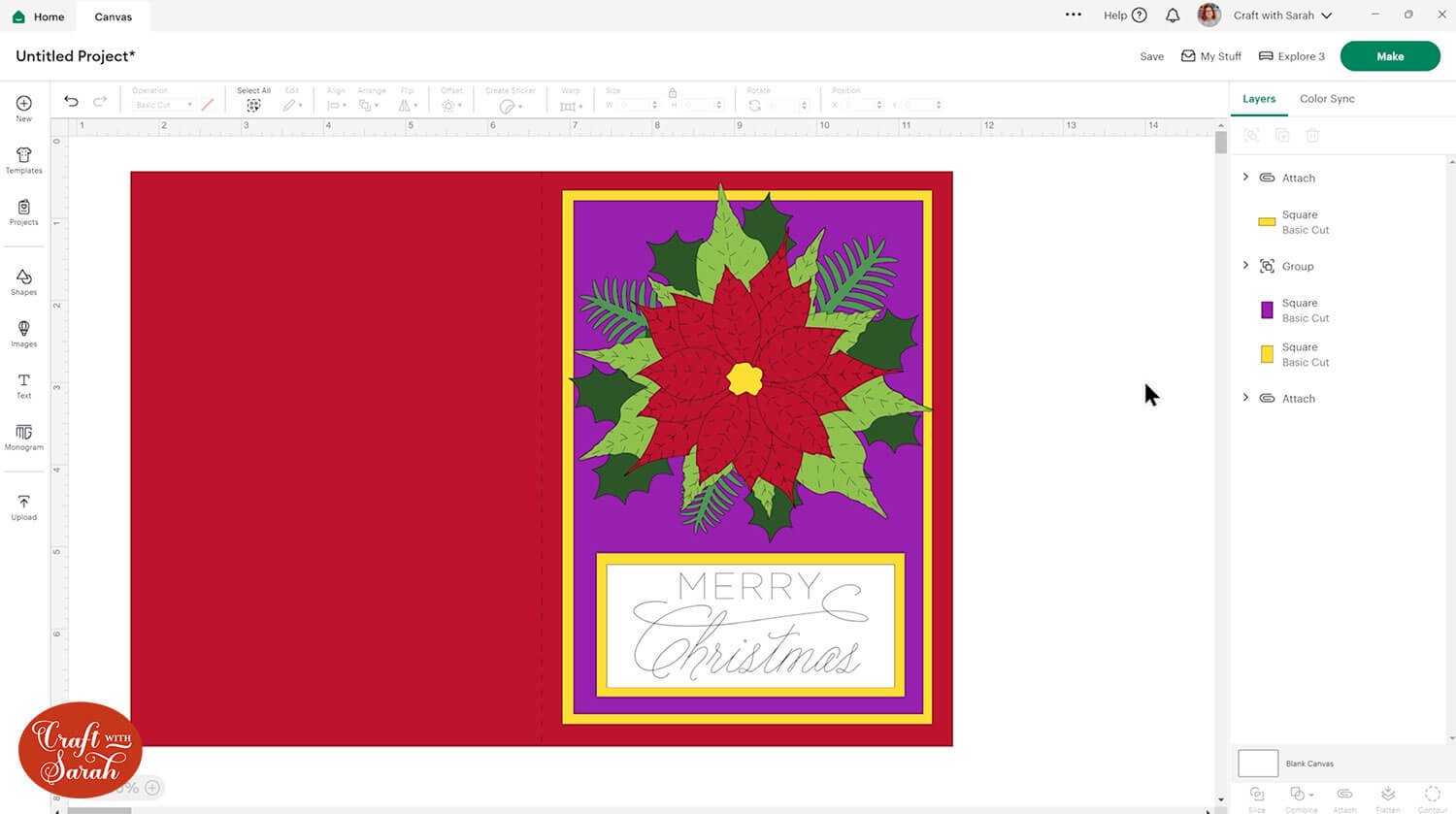 Watch the video at the top of the page for full instructions on how to create this greetings card in Design Space.