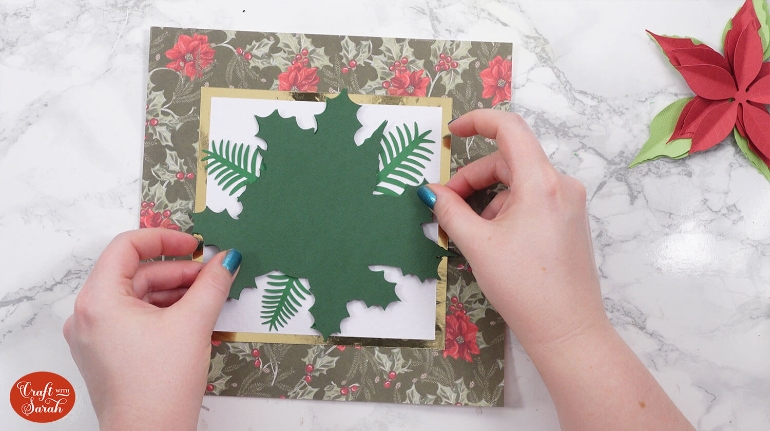 Stick together the base pieces of your shadow box or greetings card, then add the first two leaf layers on top. These are the ones without any score lines.