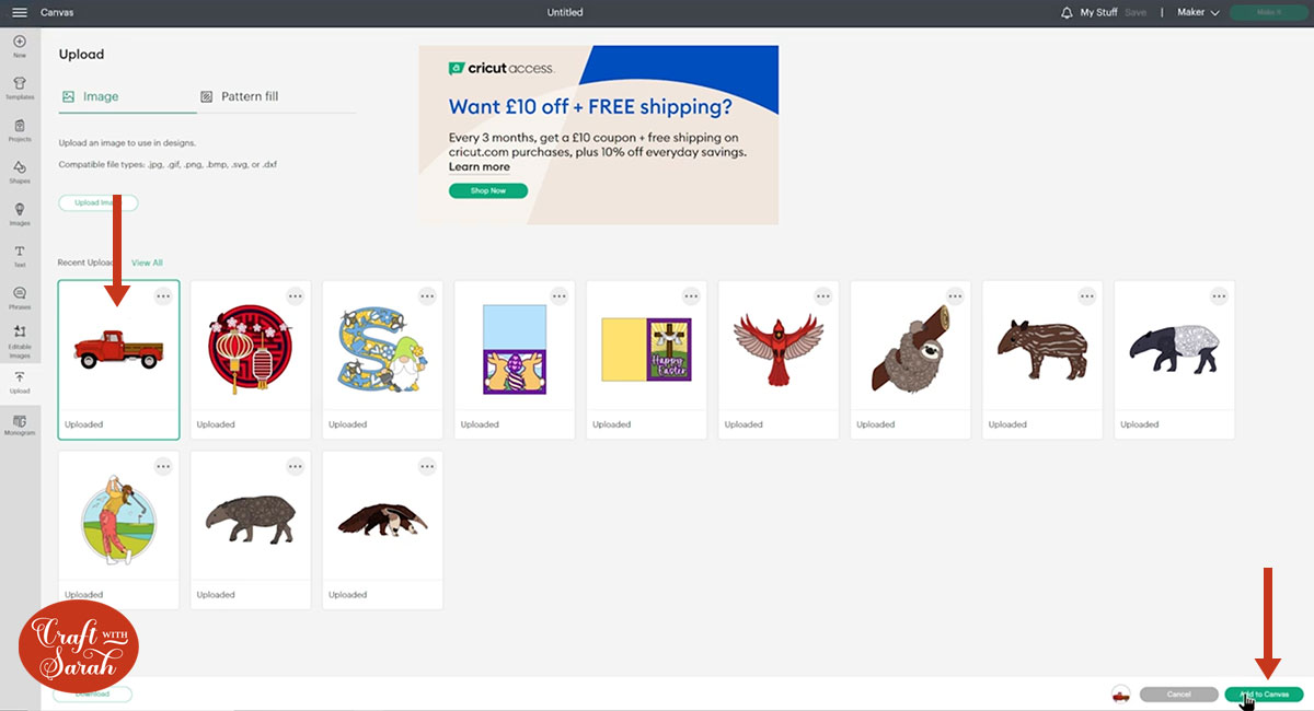 After uploading, the truck design will show in your “Recently Uploaded Images”. Click on it and then press “Add to Canvas” to put it onto your Project.