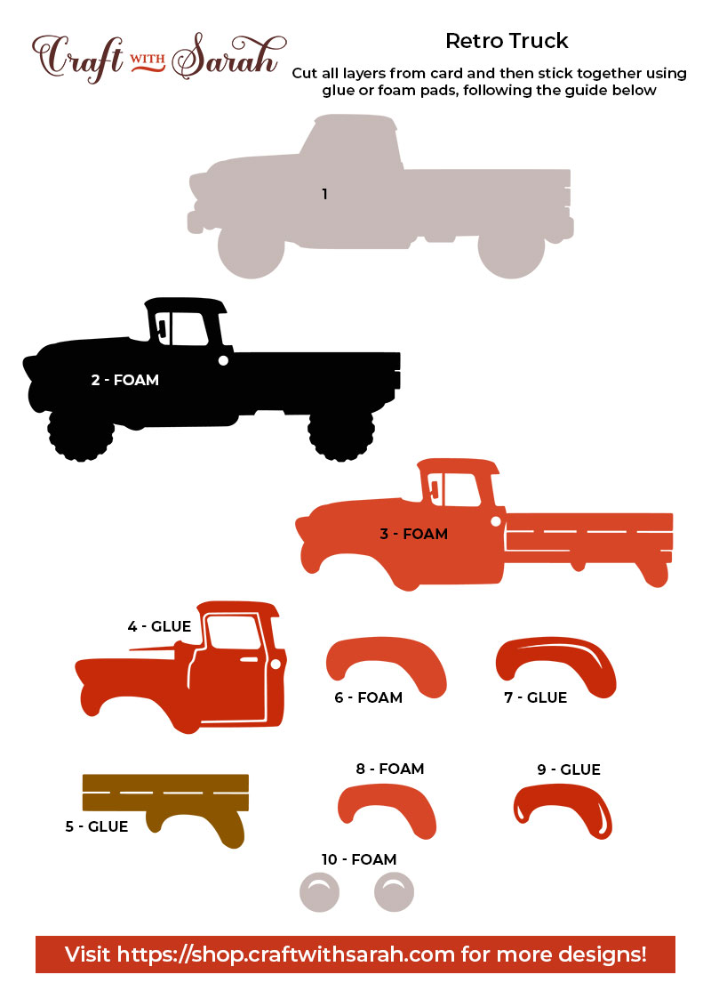 Layered retro truck SVG assembly instructions