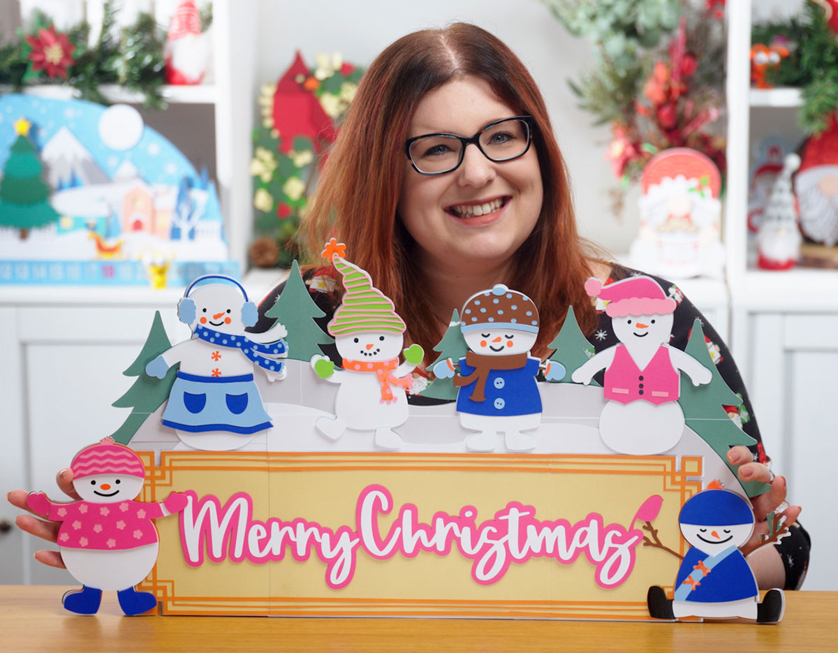 I love all the bright colours and cute little snow-people around the edge.