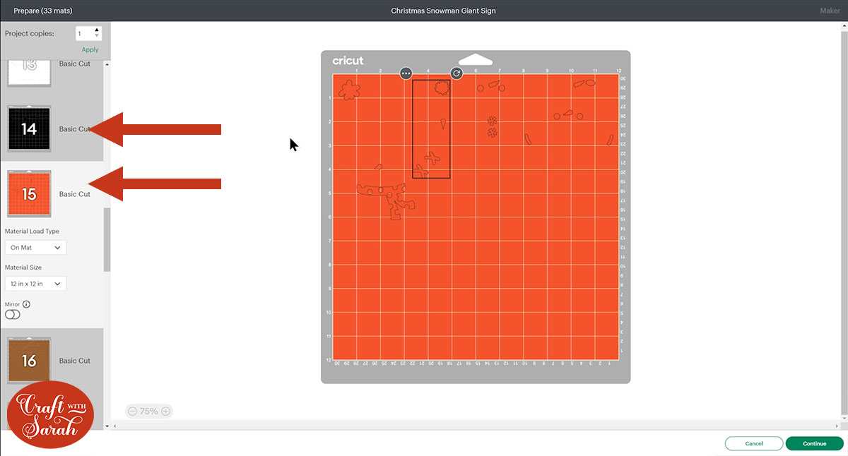 Each snowman’s black/orange parts will appear “joined” together on the mat, which again makes it easier to stick them in the correct place.