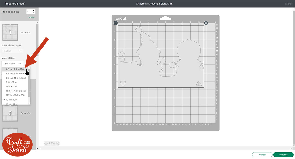 Here’s how to make a giant off-the-mat snowman with a Cricut machine.