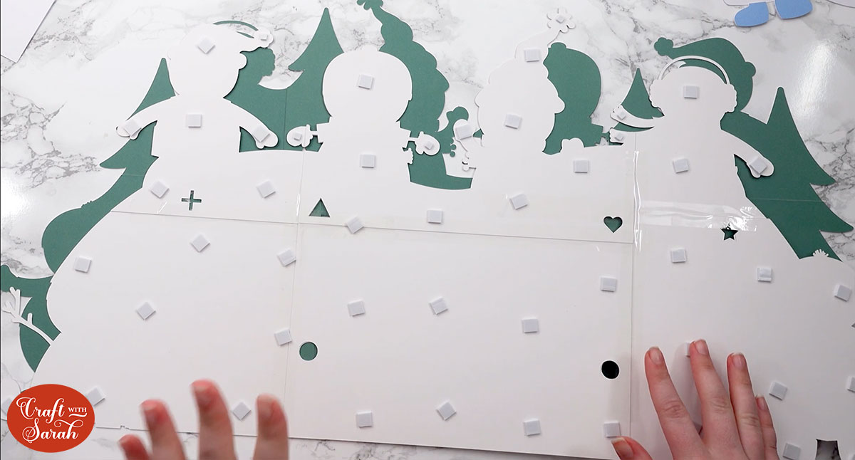 Glue the white pieces that make up the next “snow” layer directly onto the sign.