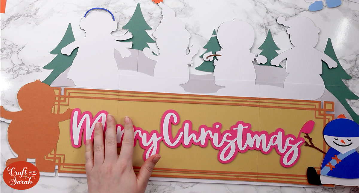 Glue the white “Merry Christmas” letters on top.