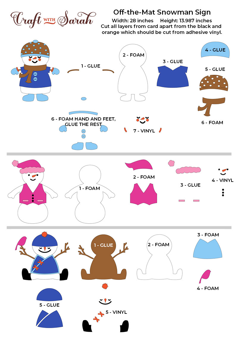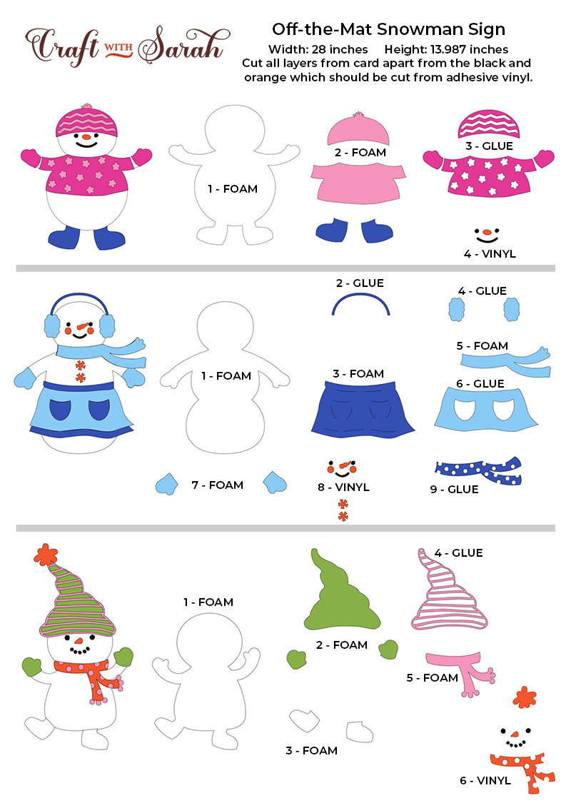Stick the snowpeople together using the guides below, then glue or foam them onto your sign.