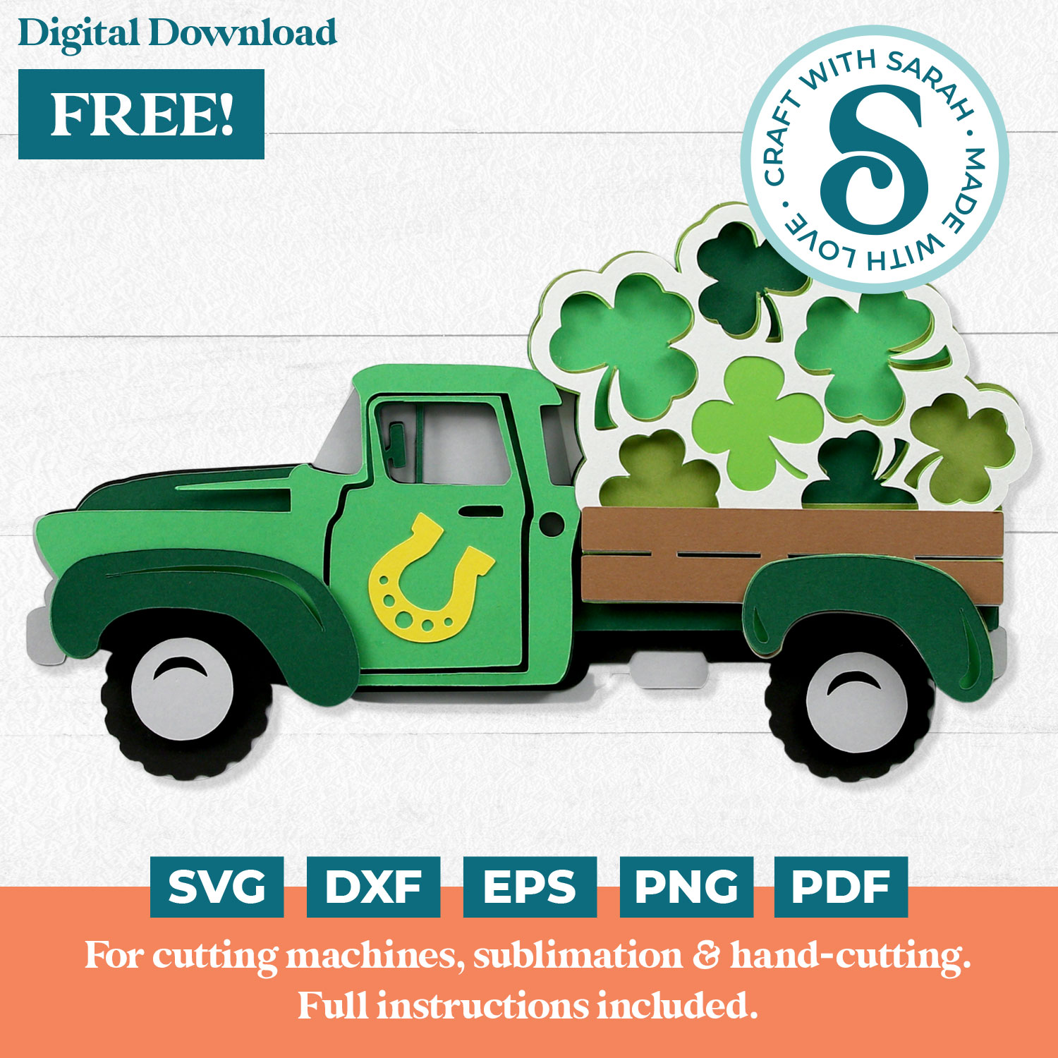 I see trucks in craft projects quite often and I love the retro feel to them. Over the past year I’ve made quite a few different truck free cutting files for different occasions, so of course I had to make a St Patrick’s Day version too!