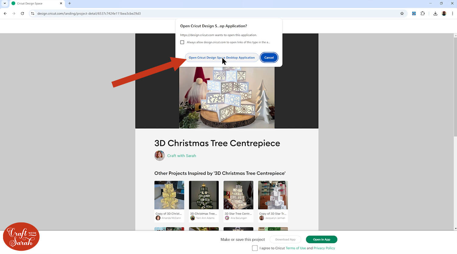 The Cricut Access folder contains a PDF document with the link to open the project. Click the link and you’ll see a screen like this: