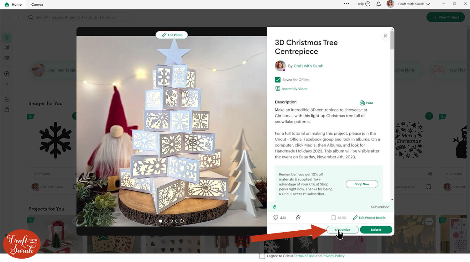 Mine has a “Customize” button at the bottom as it’s my original project. Your screen will say something like “Edit a copy” or “Open” instead. Press that to open the project.