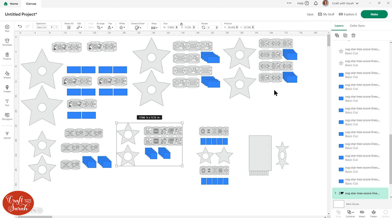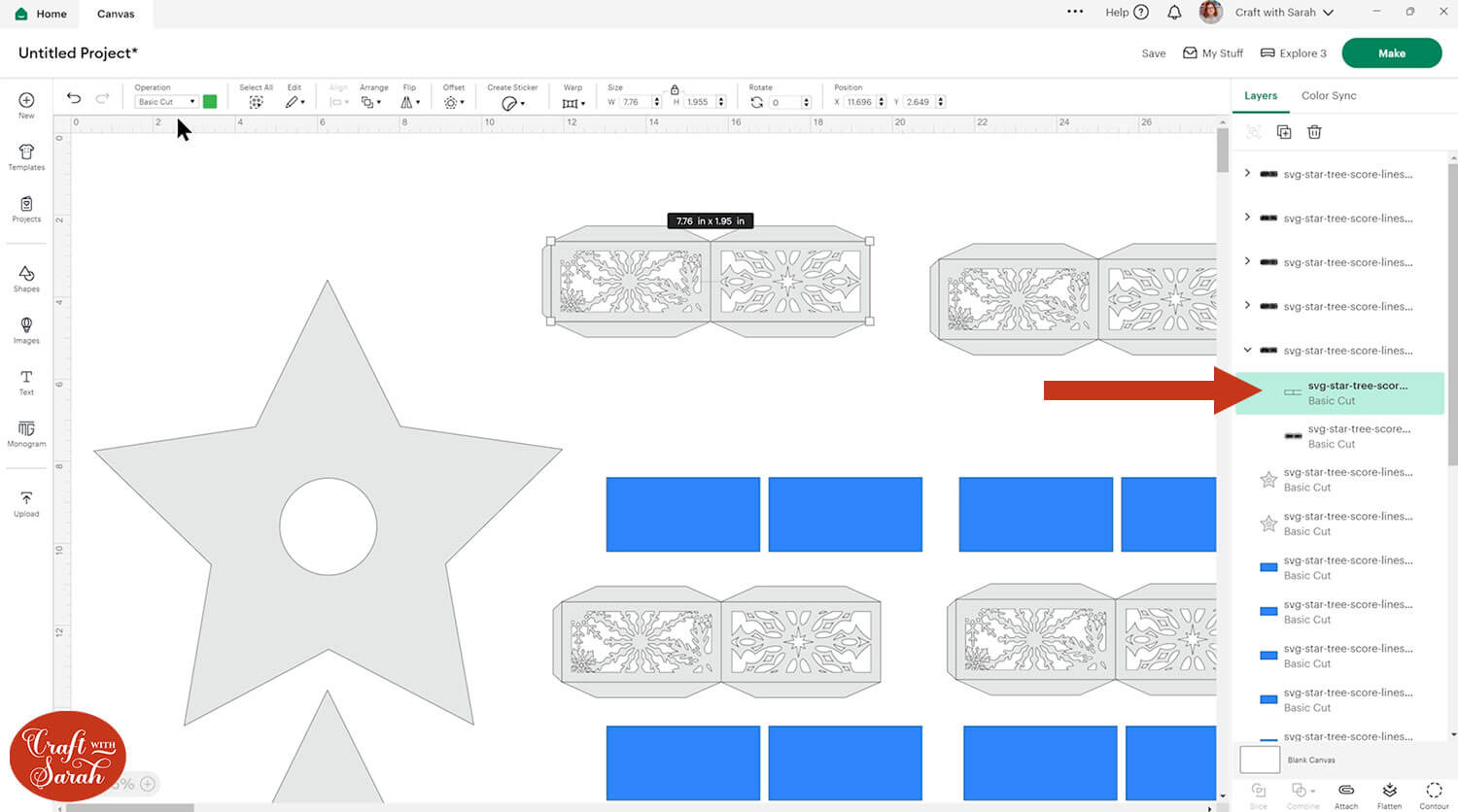 NOTE: The photos on this page show the Cricut Access version of the tree. The snowflake designs are slightly different in the SVG version.