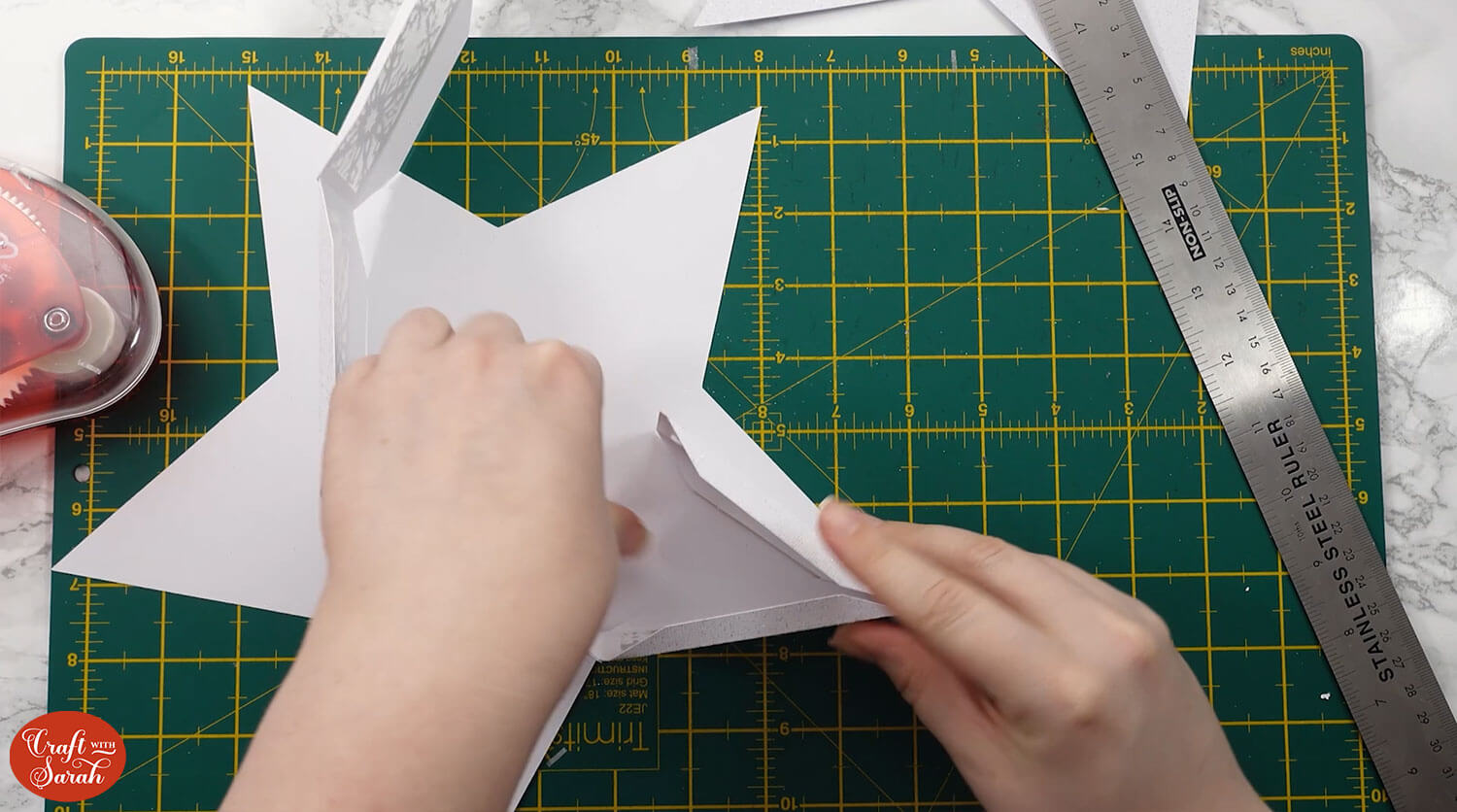 Next, press down the folds on the remaining tabs and make sure they are sitting flat and flush, ready for the other star piece to stick on top.