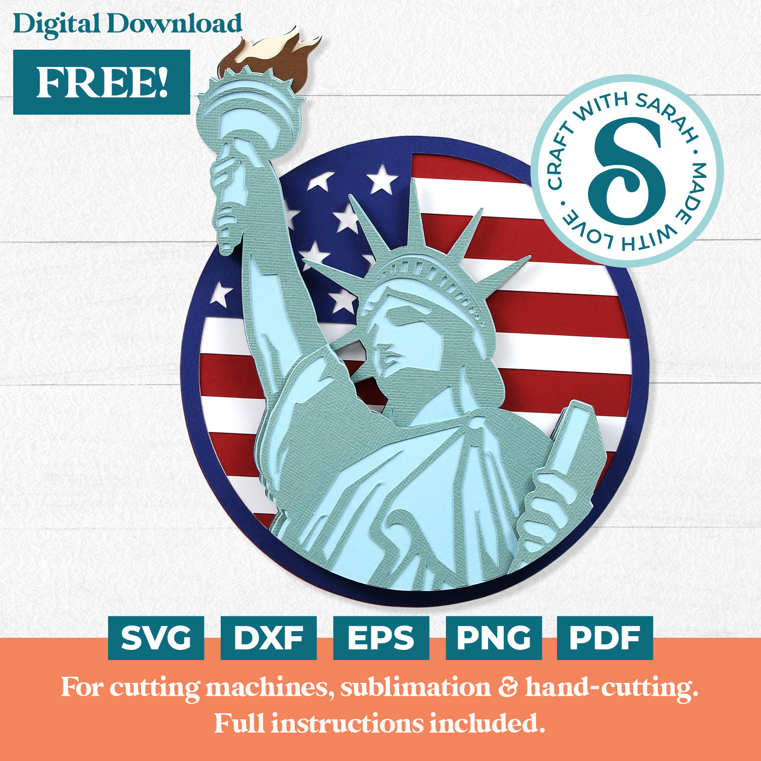 Make a patriotic craft with this free Statue of Liberty SVG with the American Flag in the background.