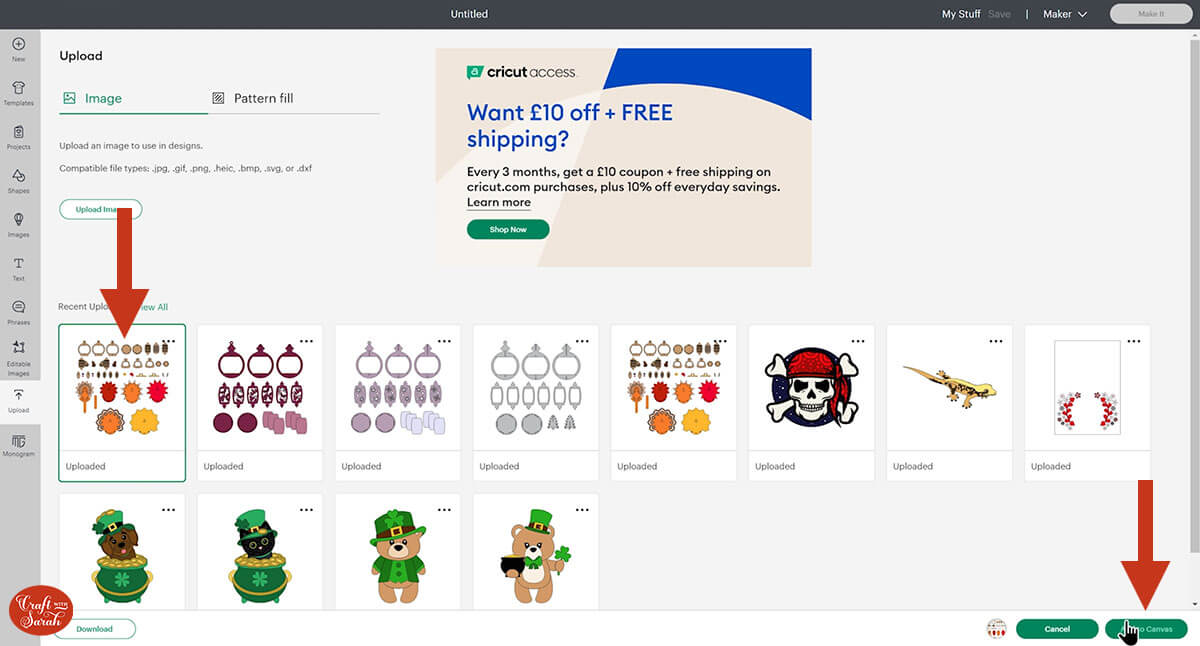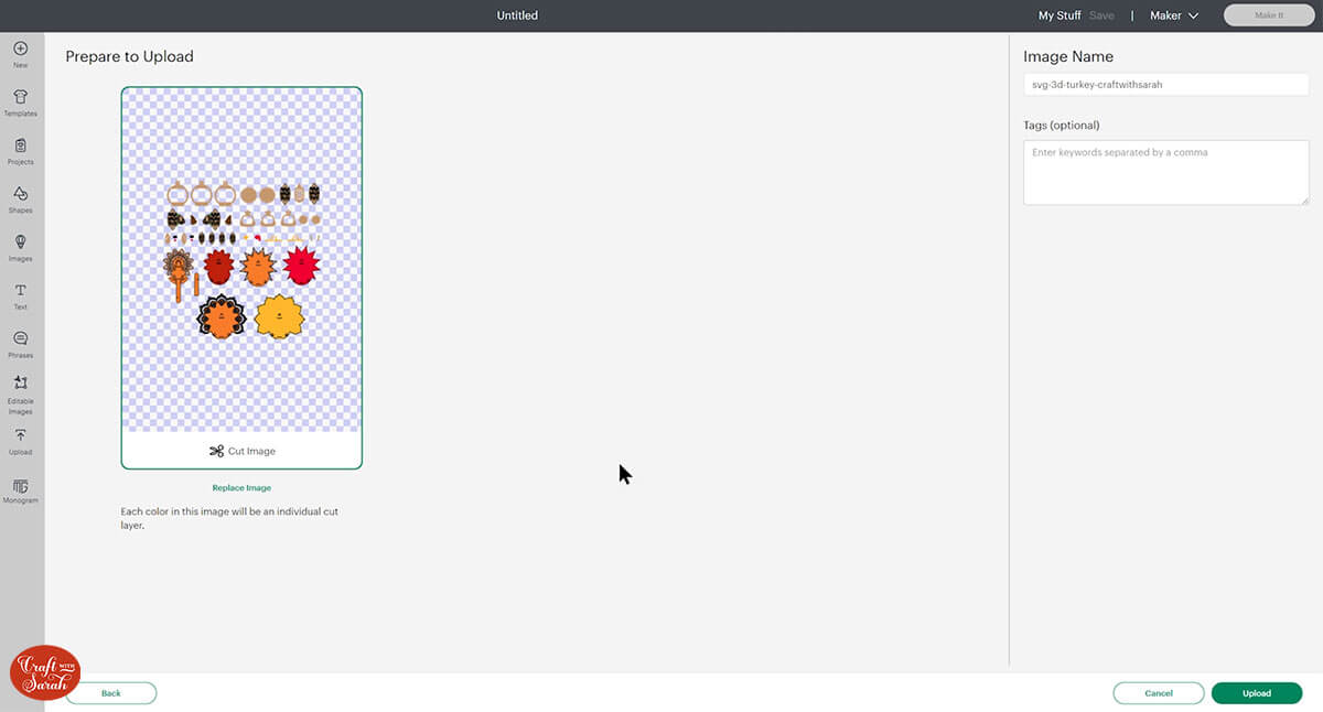 Step 2) Upload the SVG file into Design Space
