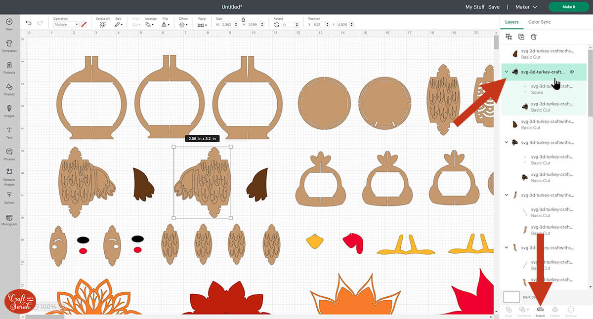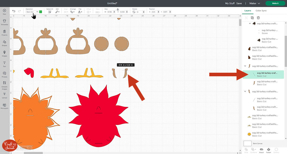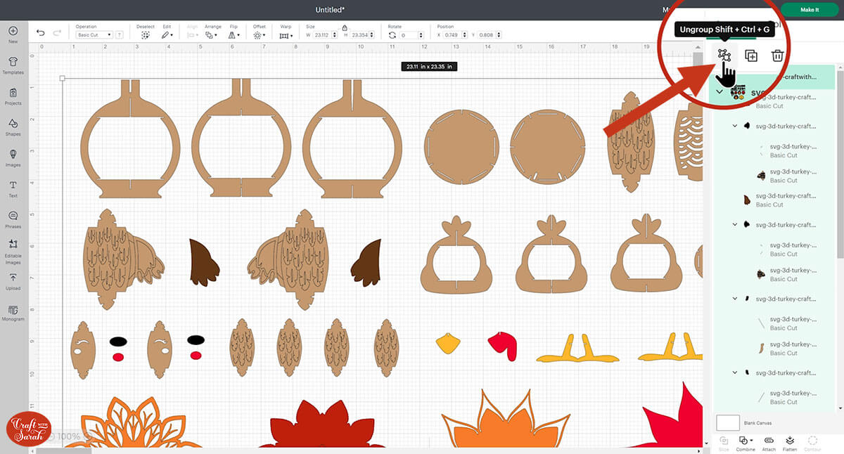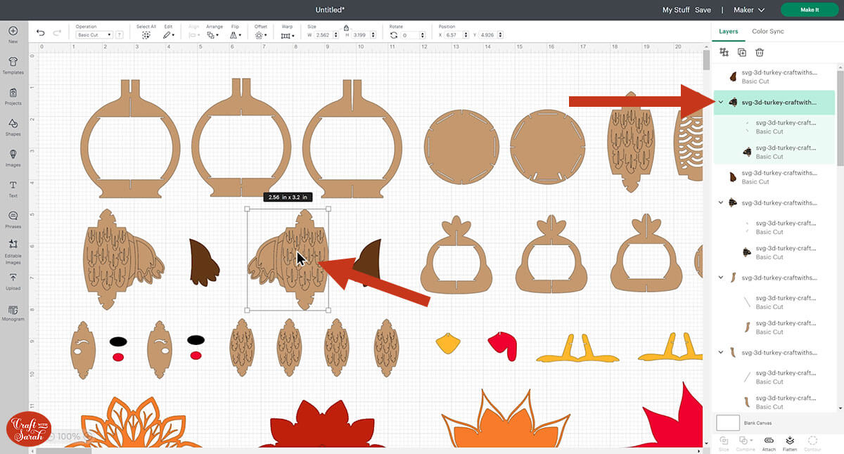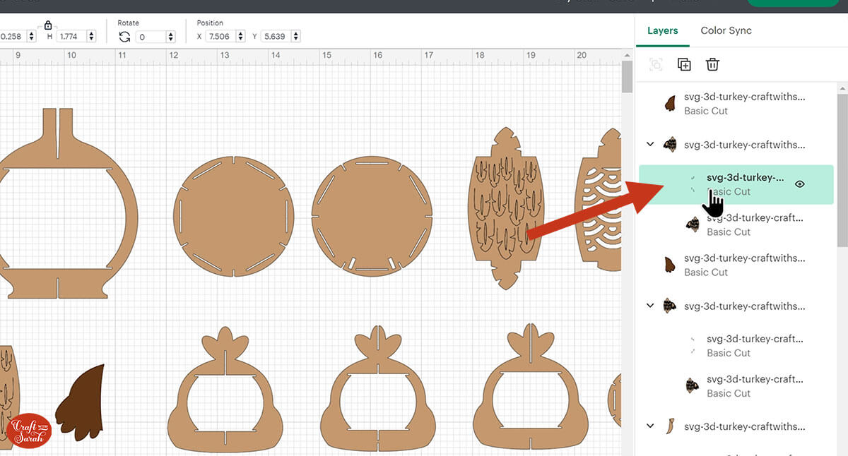 Go into the “Cut Files” subfolder and then select the file called svg-3d-turkey-craftwithsarah.svg