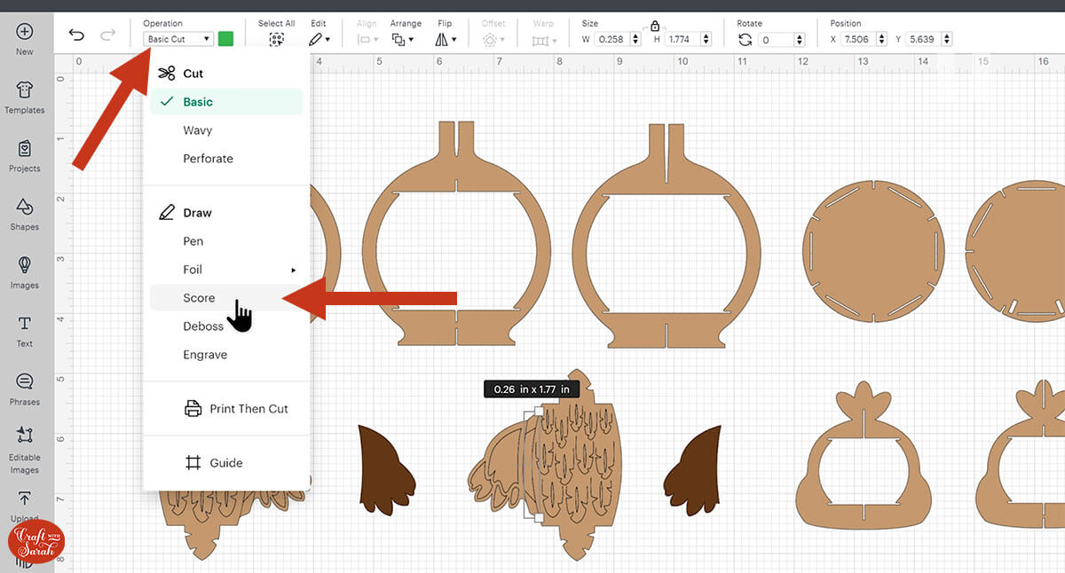 If you don’t have a scoring stylus or scoring wheel for your Cricut machine (or if you are using the Cricut Joy Xtra), you can delete the score lines.