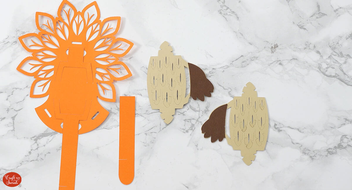 These pieces of card are how the beak is attached to the turkey. They also have a score line that needs formatting.