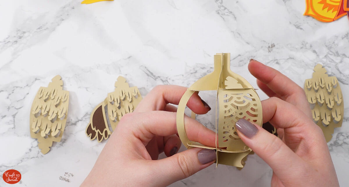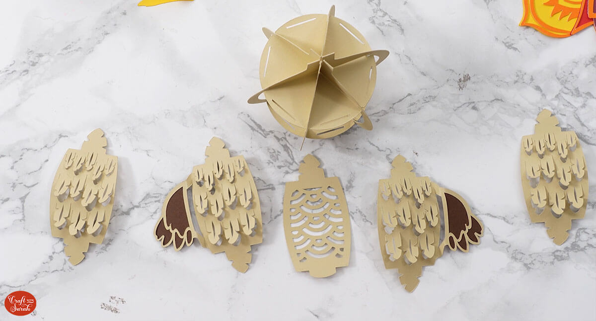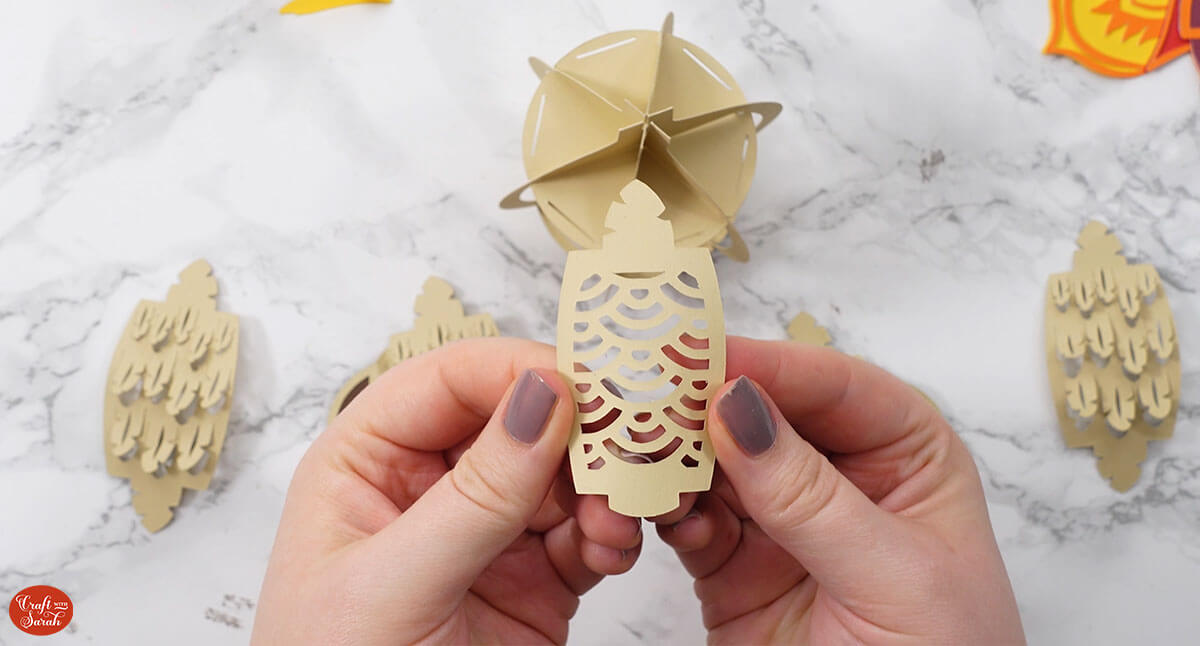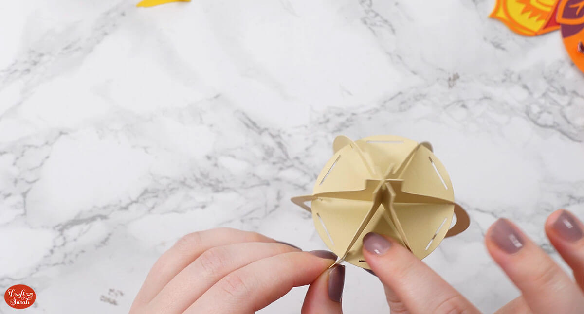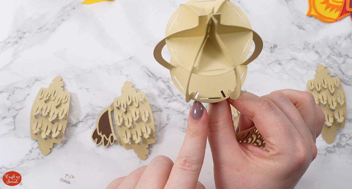Here’s how they look when they are all slotted together. Fold down the feather slits to hold them in place.