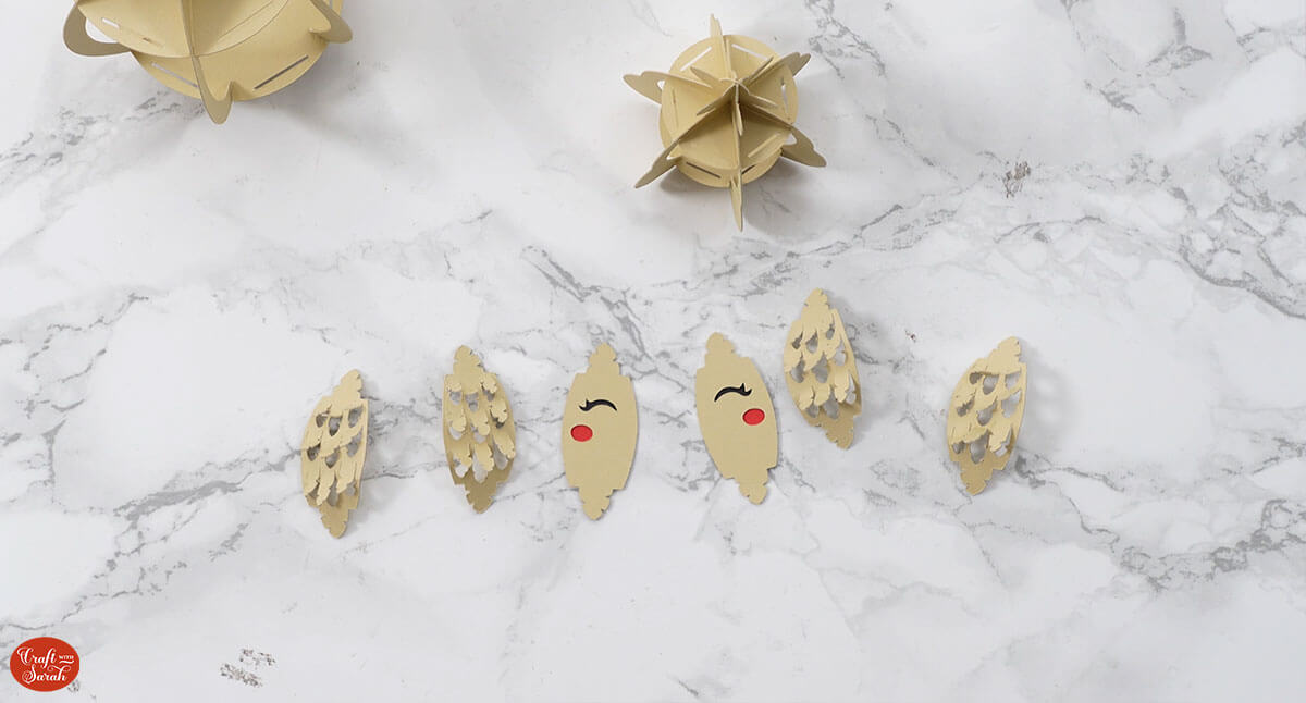 Take the pieces with the wings and fold along the score lines to make the wings have a “popout” effect.