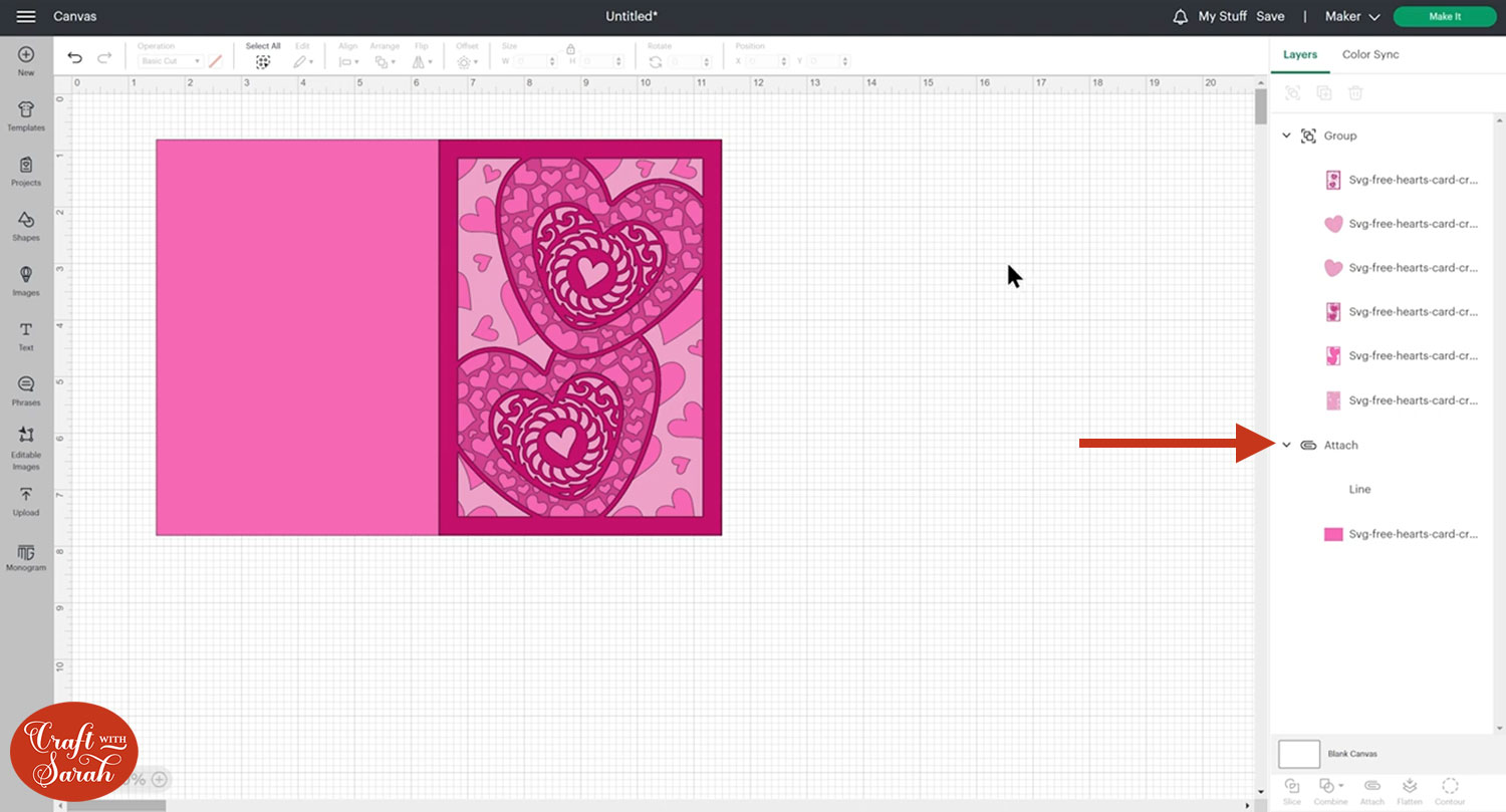 Attach is what tells the Cricut that we want it to do the score line down the middle of the base card.
