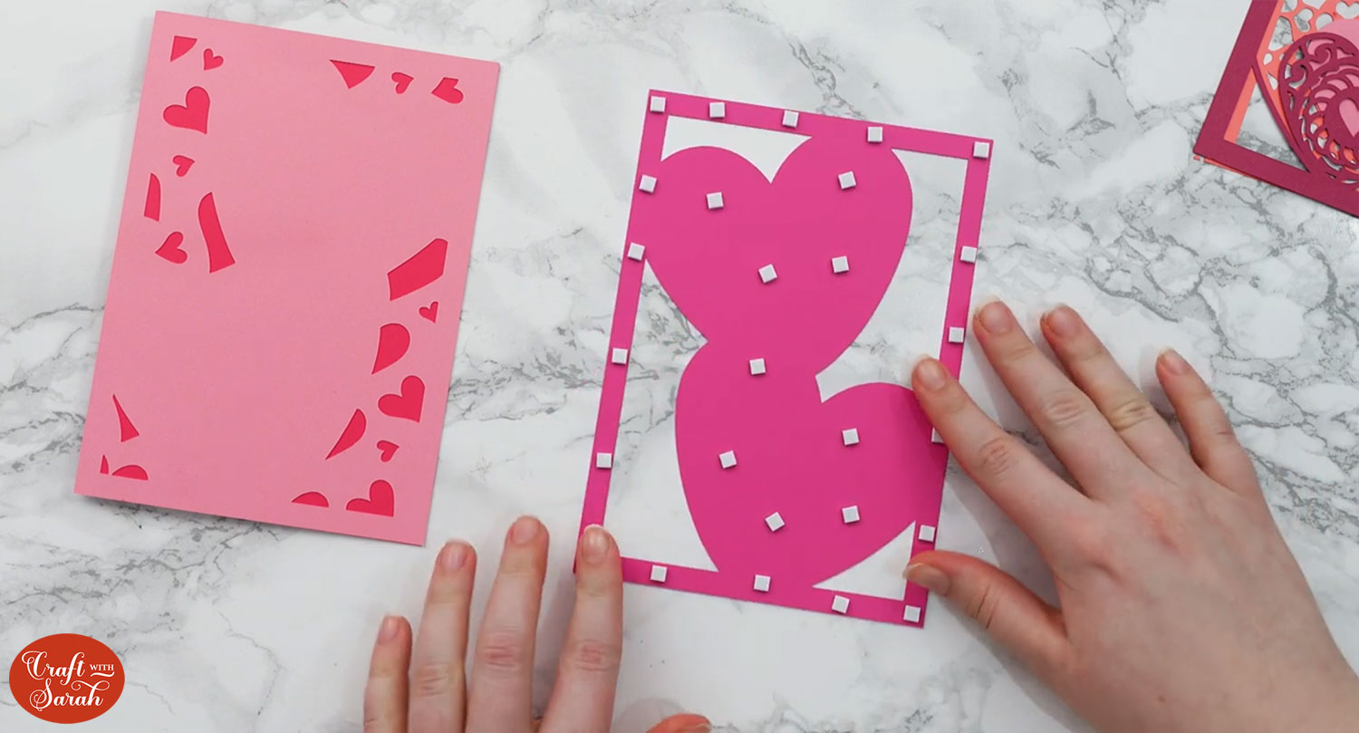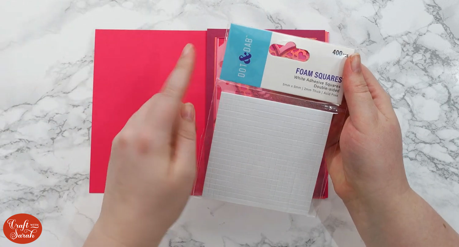 When adding the foam pads to the relevant layers, make sure you add some in the middle of the pieces of card so it give stability to the middles. If you don’t add any foam pads in the middles then it can “sag” under the weight of the other layers which doesn’t look as good.