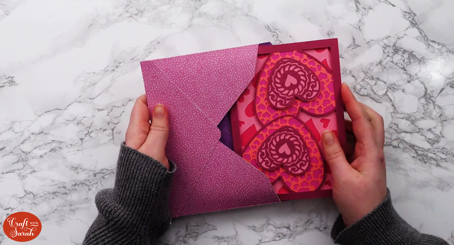 Watch the video below to find out how to cut and assemble these pretty Valentine’s Day cards. Or, keep scrolling for a written tutorial.