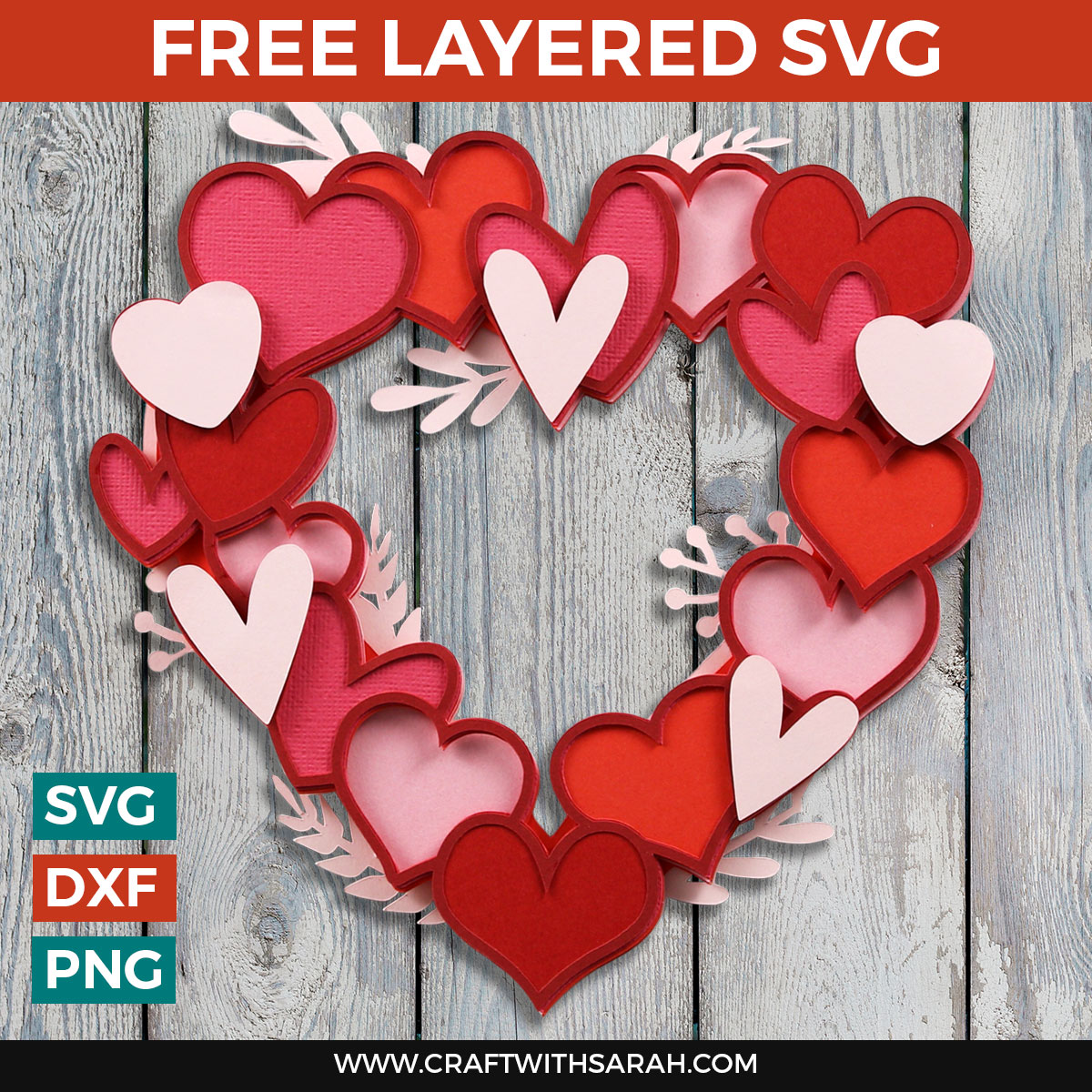 Make a beautiful Valentine’s Day paper wreath for the one you love with this free layered heart SVG.