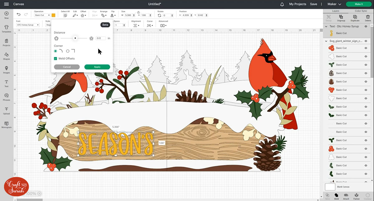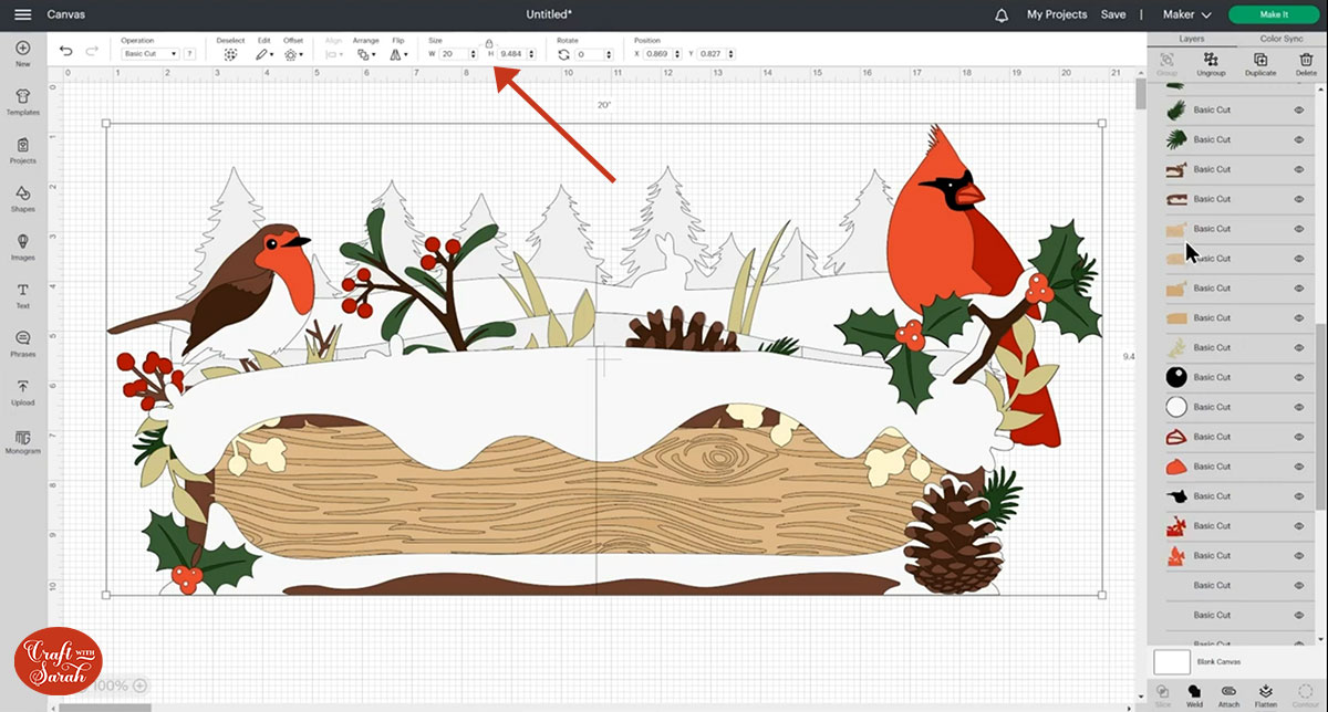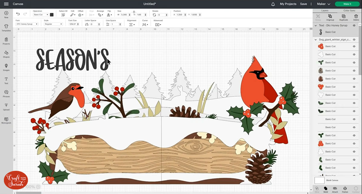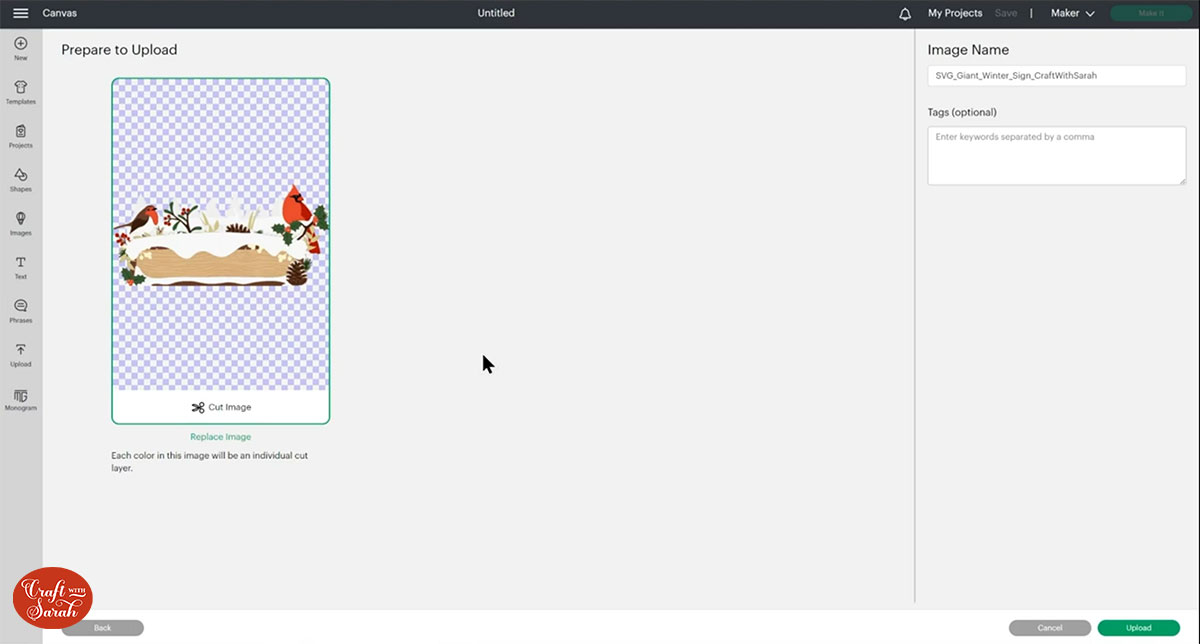 Upload the file called SVG_Winter_Sign_CraftWithSarah.svg into Cricut Design Space.