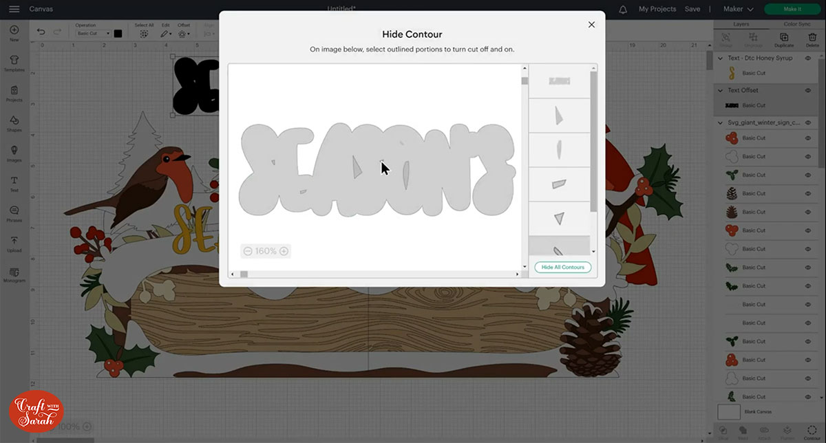 If the offset layer has any little gaps in that the Cricut would struggle with, click into “Contour” to remove them.