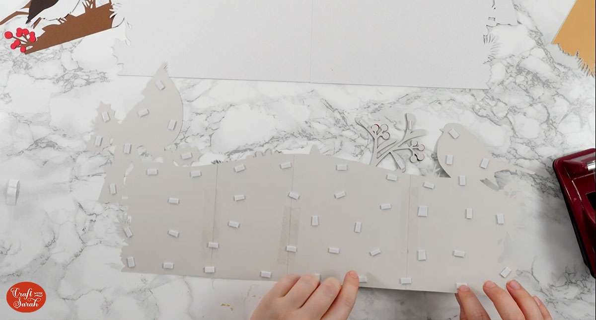 When using foam squares on large layers, make sure you place them in the middle as well as around the edge so that the cardstock doesn’t bend downwards in the middle.