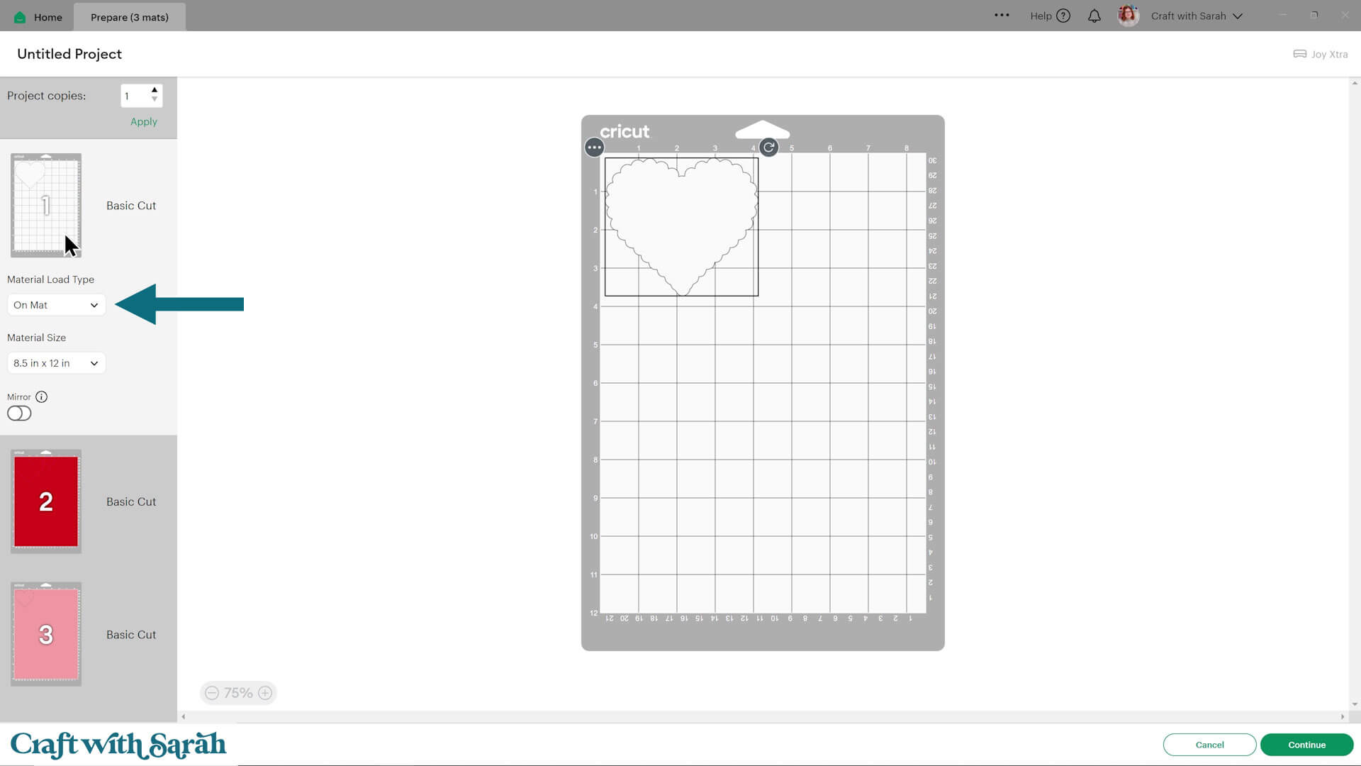 Click to select “Mat 1” in the list down the left side of the page. This will be the first color to cut.